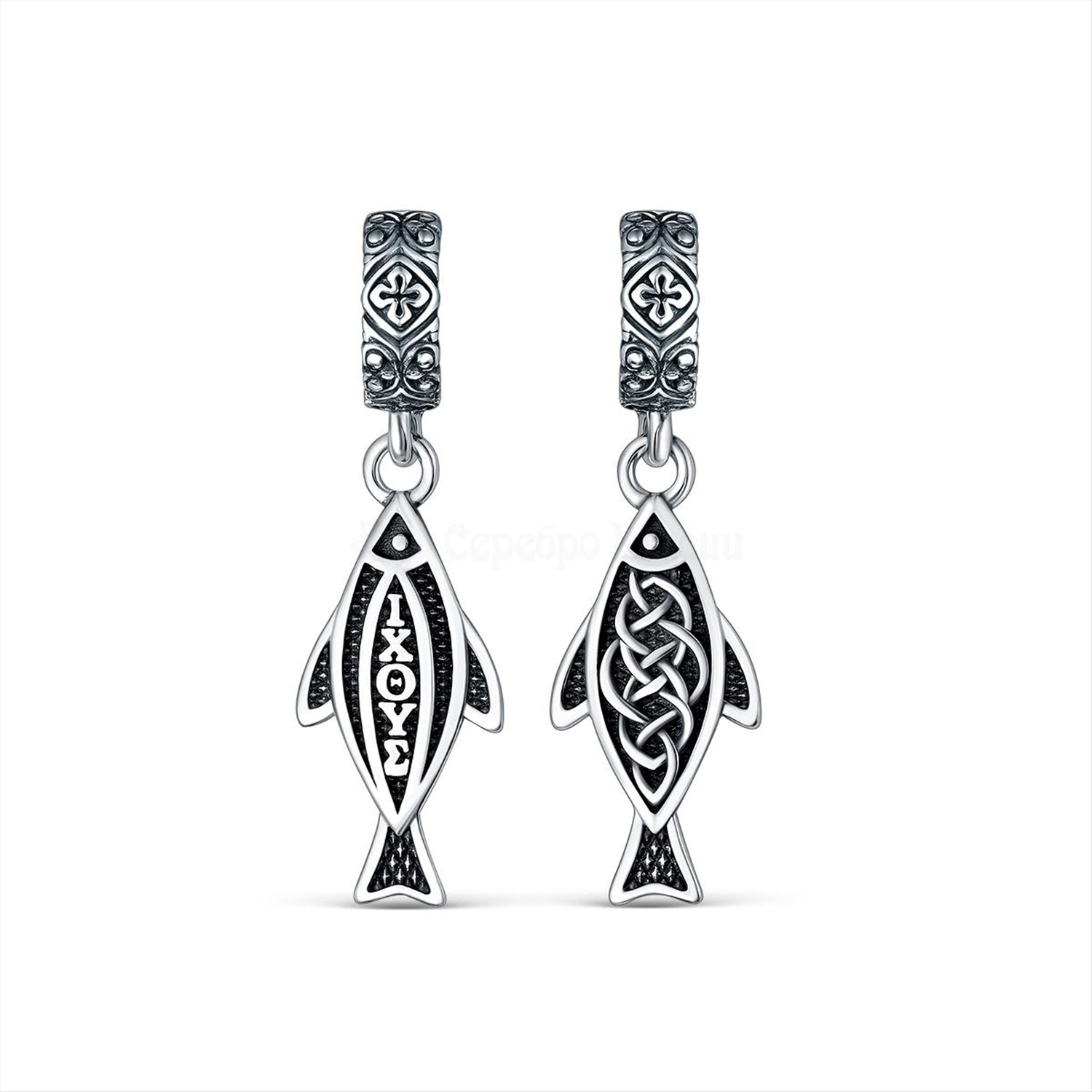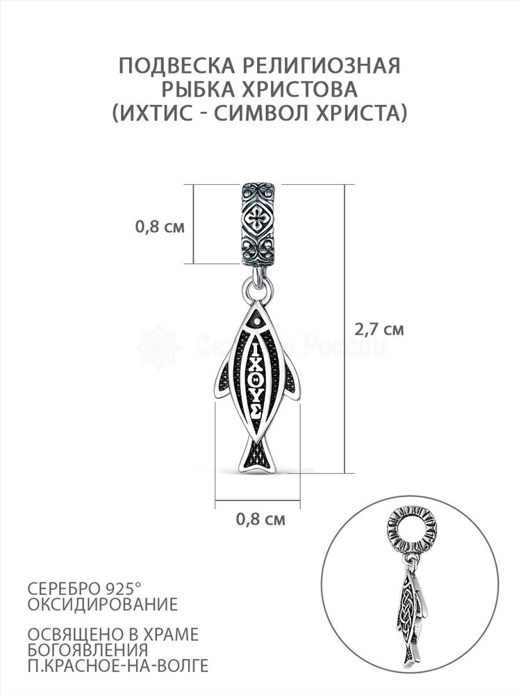 Подвеска религиозная из чернёного серебра - Рыба Христова (Ихтис - символ Христа) 925 пробы П-2529о/1