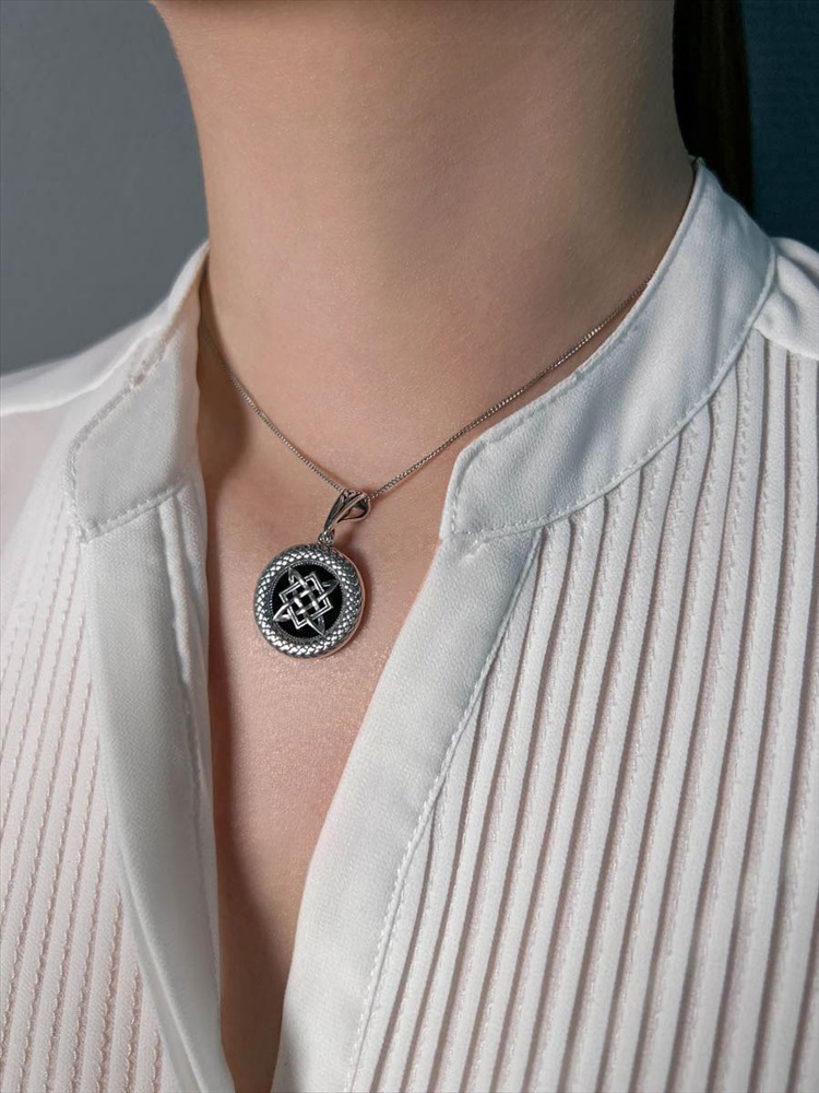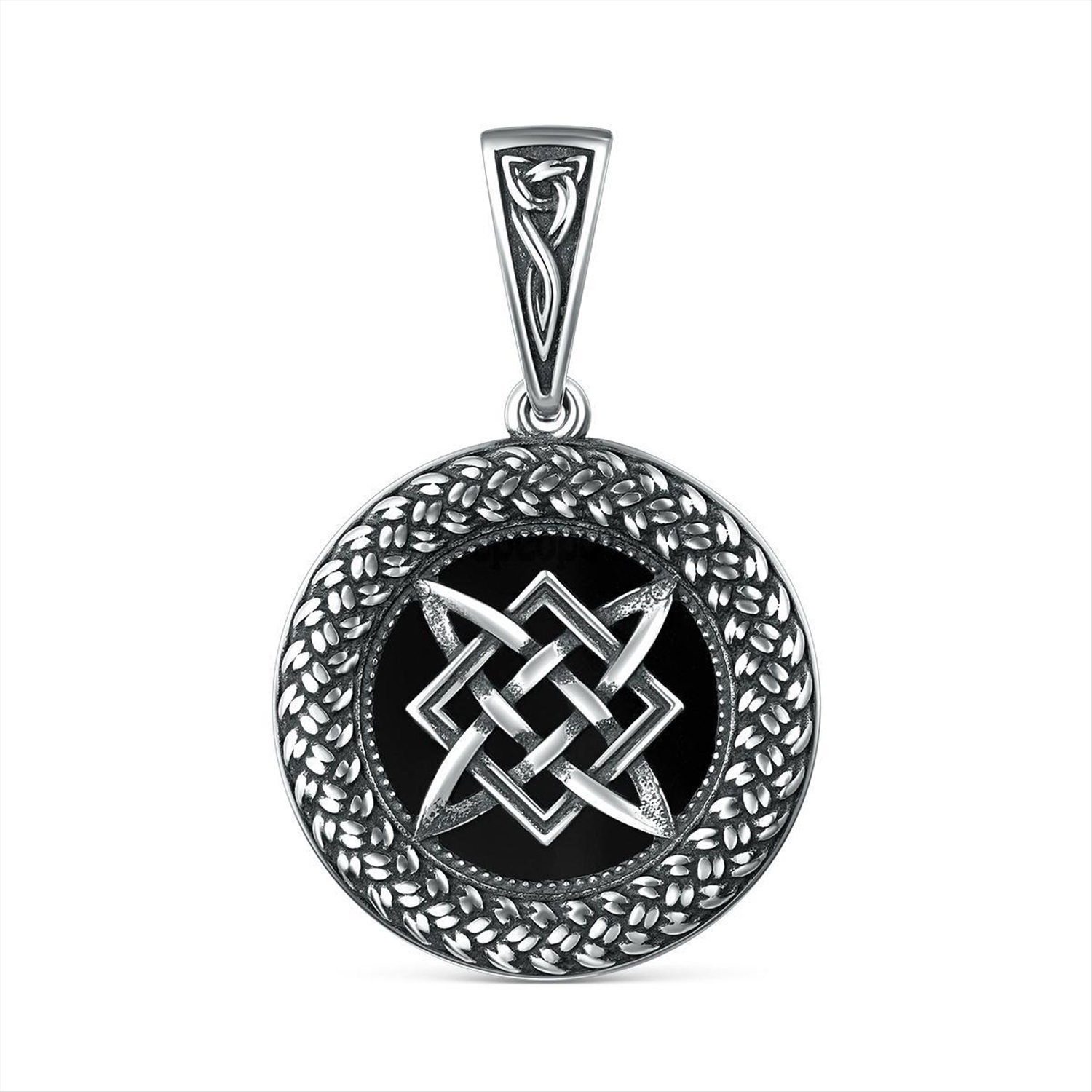 Подвеска Звезда Руси кулон славянский оберег с натуральным камнем чёрный агат чернёное серебро 925 пробы 4102017 Звезда Руси