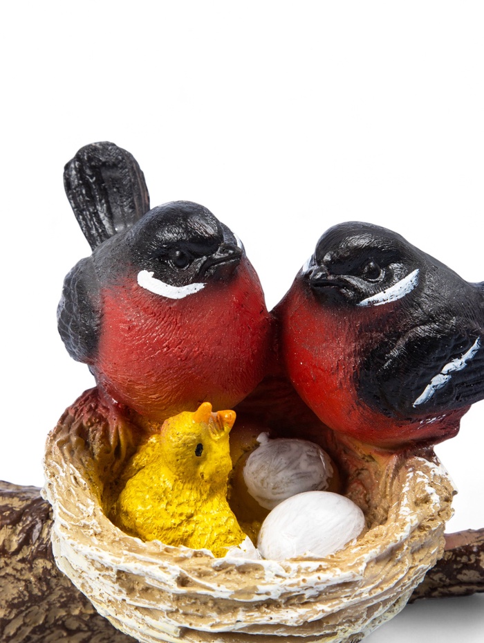 Габариты: 15 x 12 x 10 Доставка: Платная Страна: Россия В боксе: 17 шт Состав: Полистоун Материалы: полистоун Фасовка: по 1 шт Индивидуальная упаковка: Без упаковки Сертификат: Не подлежит сертификации Цвет: Разноцветный Материал: Полистоун Можно оставлять зимой на улице: Да Подвесное гнездо со снегирями — садовая фигурка из полистоуна, которая наполнит ваш сад ярким зимним настроением. Композиция с птицами в уютном гнезде создаёт трогательный и праздничный образ, напоминая о приближении нового года.