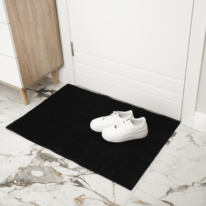 Страна: Россия В боксе: 25 шт Состав: ПВХ, полимер Материалы: ПВХ, полимер Фасовка: по 1 шт Индивидуальная упаковка: Без упаковки Сертификат: Не подлежит сертификации Цвет: Чёрный Длина, см: 90 Ширина, см: 60 Тематика: Однотонная Материал: ПВХ, Полимер Вид покрытия коврика: Щетинистый Ковровое покрытие «Травка» — лучшее решение для защиты помещения от влаги, мелких частиц песка и грязи, приносимых на подошвах обуви. Высота щетины от 12 до 14 мм. Оно изготовлено из безвредного материала — полиэтилена, который не подвержен воздействию продуктов бытовой химии. Изделие имеет плотную подложку из нетканого материала, что значительно повышает эффективность и срок службы. Отпадает необходимость прикреплять покрытие к полу и исключается загибание углов в процессе эксплуатации. Обладает противоскользящими свойствами. Ворс ковриков не осыпается, и сам коврик не распускается даже при разрезании. Преимущества данного коврового покрытия: