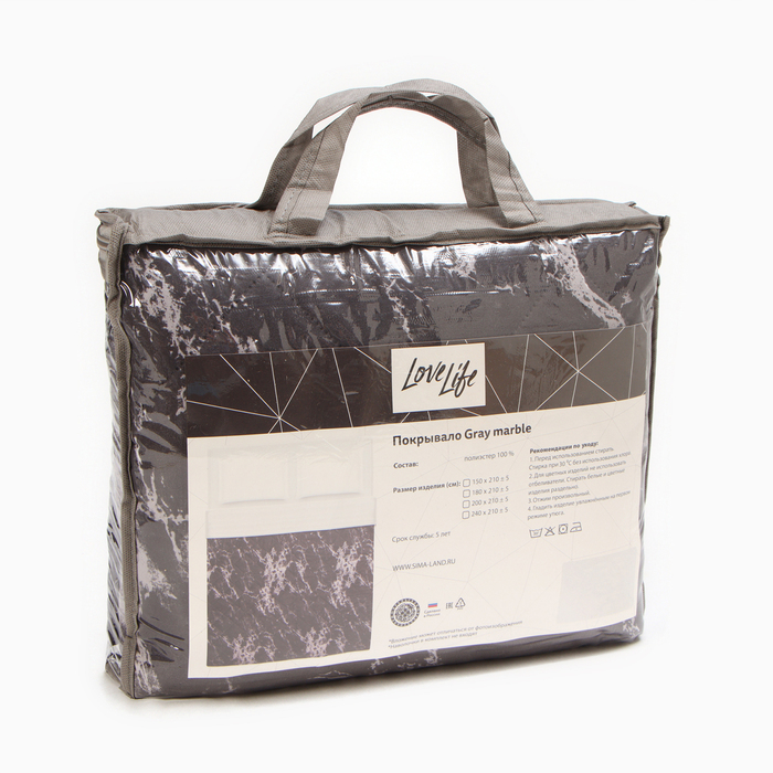 Габариты: 37 x 30 x 12 Страна: Россия В боксе: 4 шт Состав: Полиэстер 100% Материалы: полиэстер Фасовка: по 1 шт Сертификат: ЕАС Цвет: Серый Ткань: Микрофайбер Длина, см: 210 Ширина, см: 180 Тематика: Мрамор Вид упаковки: PVC-пакет Декоративные элементы: Отстрочка Рекомендации по уходу: Не отбеливать, Стирка при 30 °С Состав ткани: Полиэстер Комментарии к товару