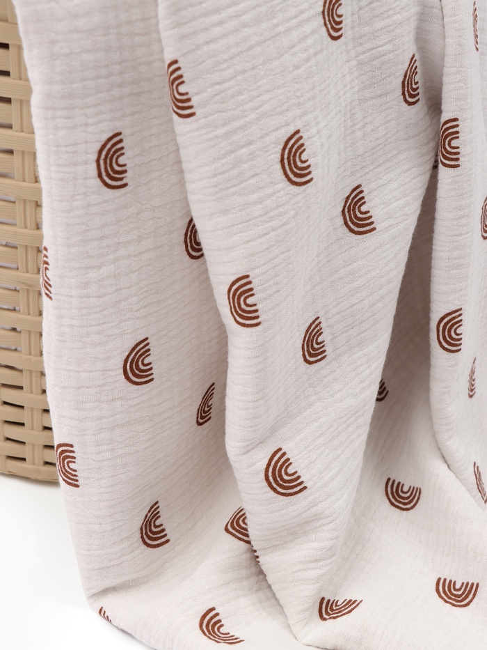 Покрывало «Радуга», 100×130 см, 4-слойный муслин, 100% хлопок — это мягкое и дышащее покрытие для детского пространства. Лёгкое изделие с нежным принтом подходит на кроватку, пелёнальный стол или как игровое одеяло — заботливое решение для тех, кто ценит натуральность, уют и атмосферу детской гармонии без излишеств.