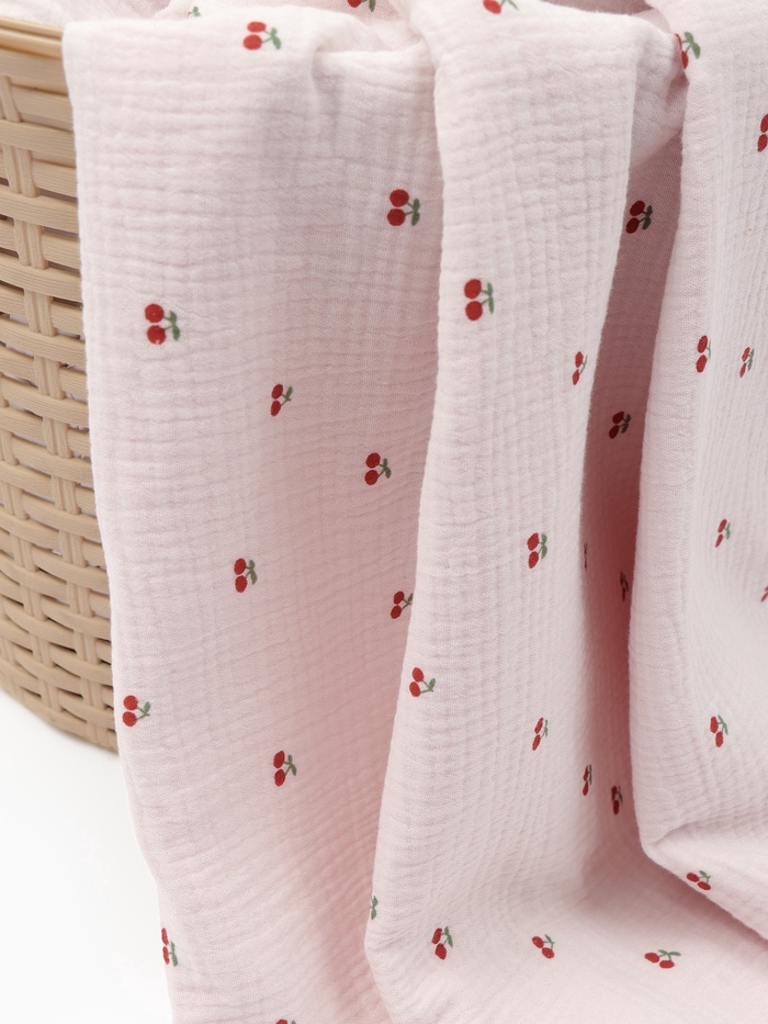 Покрывало «Спелая вишенка», 100×130 см, 4-слойный муслин, 100% хлопок — это нежное и дышащее покрытие для детского пространства. Лёгкое изделие с ягодным принтом подходит на кроватку, пелёнальный стол или как игровое покрывало — заботливое решение для тех, кто ценит натуральность, мягкость и атмосферу детской заботы без излишеств.