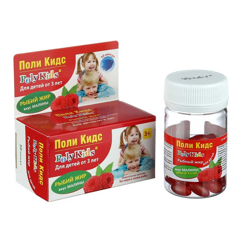 Поли Кидс детский рыбий жир жевательные капсулы вкус малины №50.Описание:Poly Kids - натуральный норвежский рыбий жир со вкусами малины и апельсина. Биологически активная добавка к пищи. Поли Кидс- это жевательные капсулы с высоким содержанием Омега-3 полиненасыщенных жирных кислот ДГК (докозогексаеновая кислота). ДГК – является важным строительным блоком для тканей мозга, сетчатки и нервной ткани. Максимум пользы и никакого запаха и вкуса рыбы. Рекомендуется для детей от 3-12 лет и взрослым. Способ применения:Детям старше 3 лет по 4-8 капсул в течение дня. Продолжительность приема - 1 месяц. Возможны повторные приемы в течение года. Состав:Жир океанических рыб, оболочка (глицерин, желатин, крахмал картофельный, вода, ароматизатор натуральный "малина", краситель натуральный (кармин)), ароматизатор натуральный "малина", антиокислители (смесь токоферолов, аскорбил пальмитат). Срок годности:24 месяца. Данная продукция не является лекарственным средством.