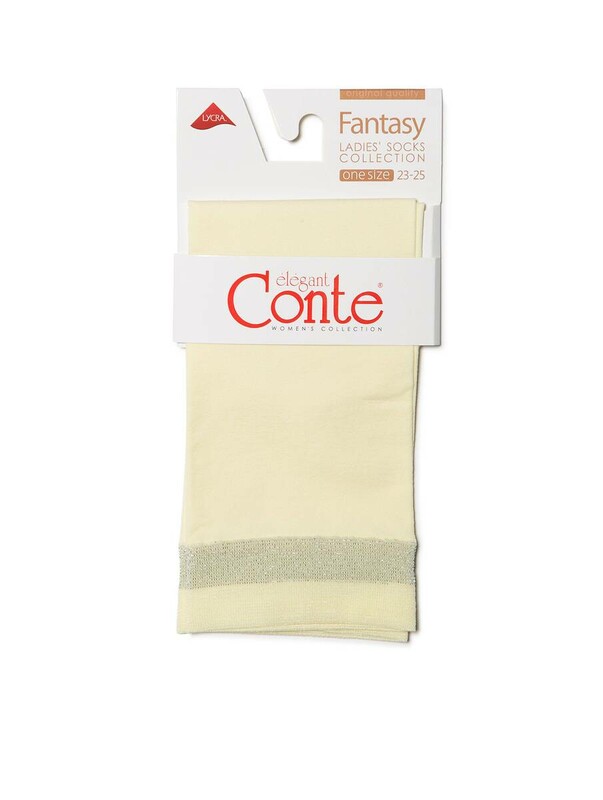 Производитель: CONTE ELEGANT Однотонные фантазийные носки с сияющим бортиком из люрекса созданы для девушек, которые любят выглядеть оригинально и с удовольствием подчеркивают свою индивидуальность. Носки комфортные и невероятно стильные.