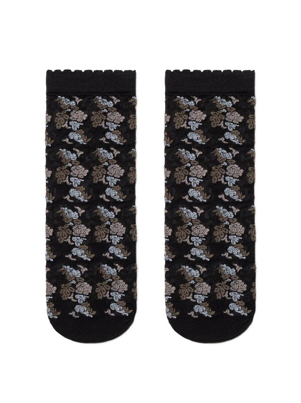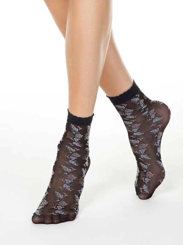 Тонкая полупрозрачная сеточка, имитация объемной ручной вышивки с цветочными мотивами, борт с пикотом – в этих фантазийных носках прекрасно все. Расставляйте модные акценты в своем образе правильно с оригинальными носочками!