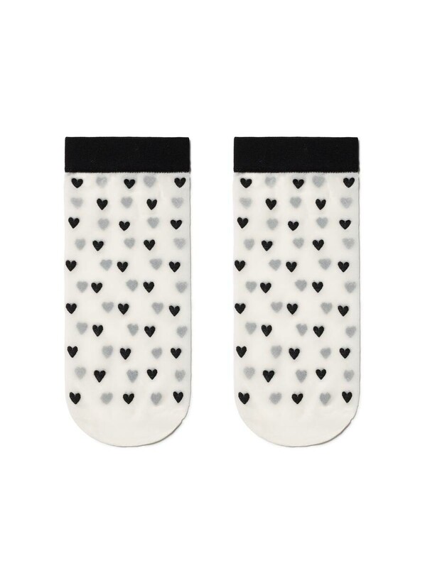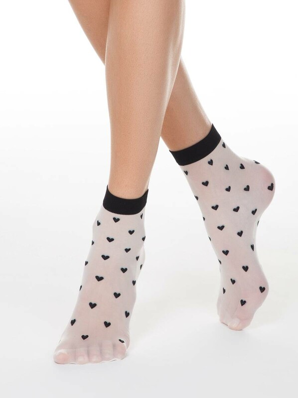 Тонкие фантазийные носки с рисунком «сердечки» – идеальное дополнение к романтичному образу современной девушки. Носки эластичные, легкие, безупречно облегающие ногу, поэтому в них будет комфортно на протяжении всего дня.
