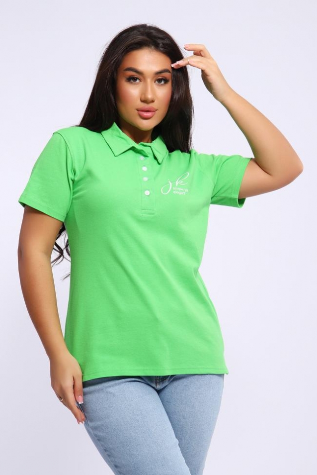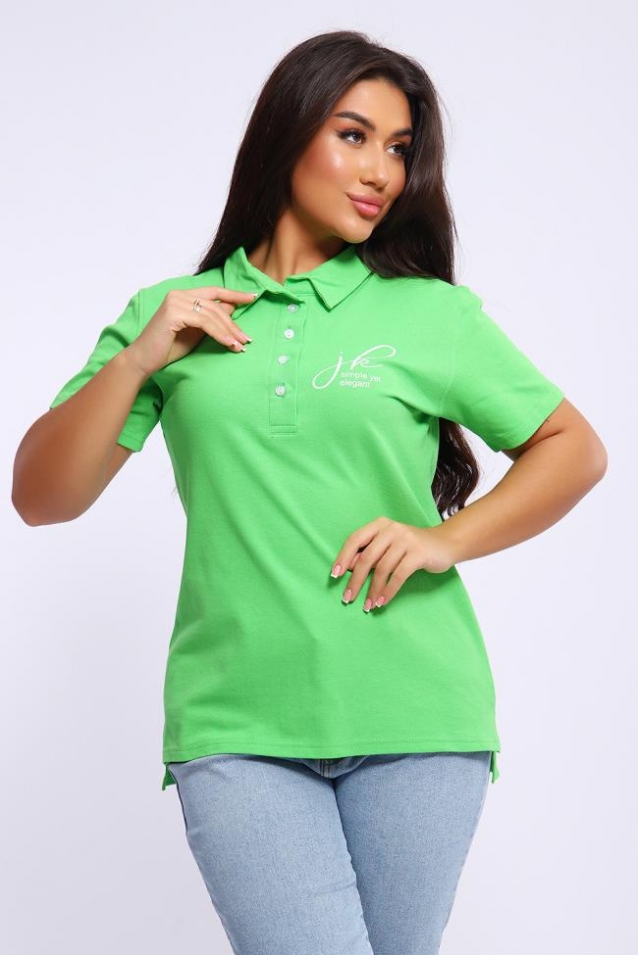 Поло женское выполнено из лакост 100% хлопок. Поло ярких расцветок с коротким рукавом, воротник вязаный, по бокам разрезы, застежка-планка на пуговицах. Спереди оригинальный принт. Футболка отлично подойдет как для дома, так и для прогулок и отдыха.