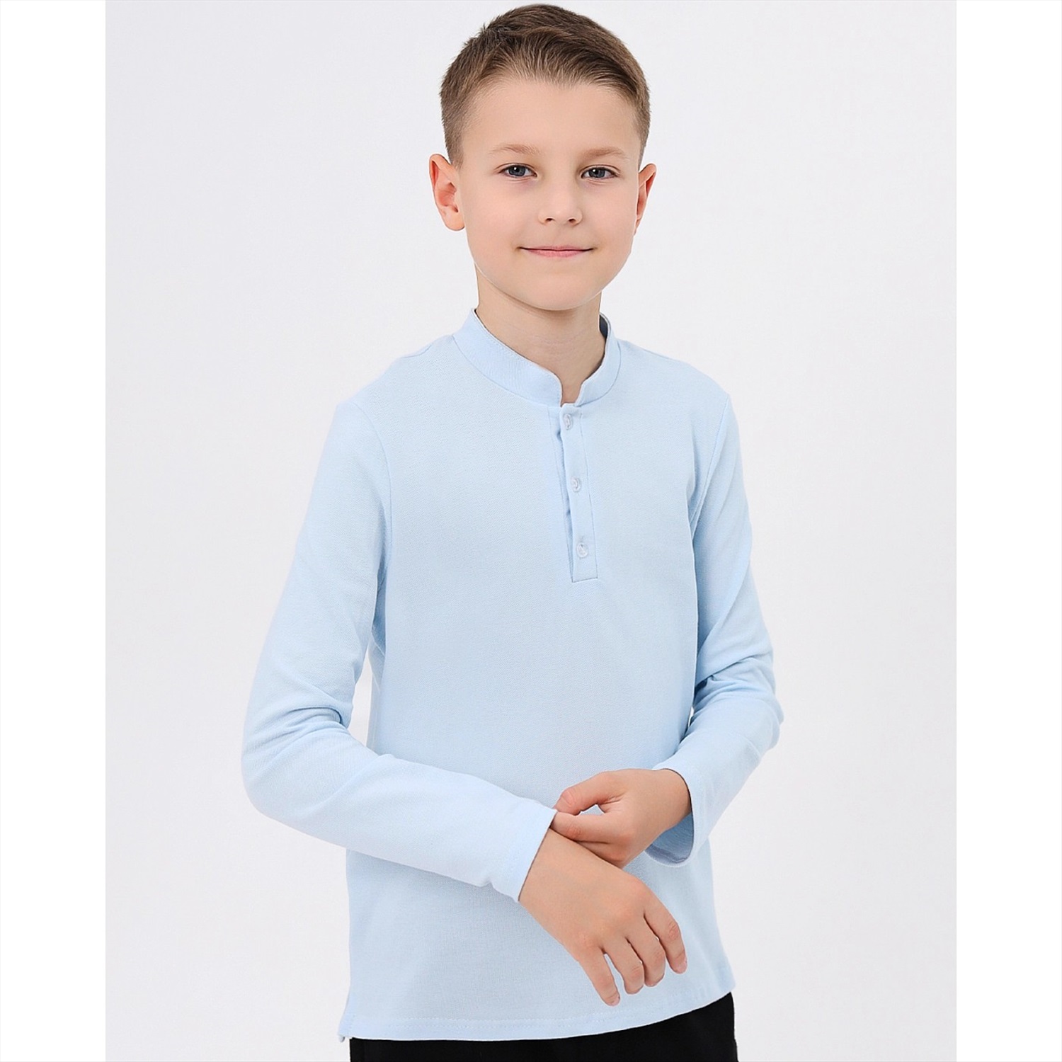 Отличное поло с длинным рукавом для мальчиков, выполненное из 100% хлопка - пике. Впереди - застёжка на пуговки.