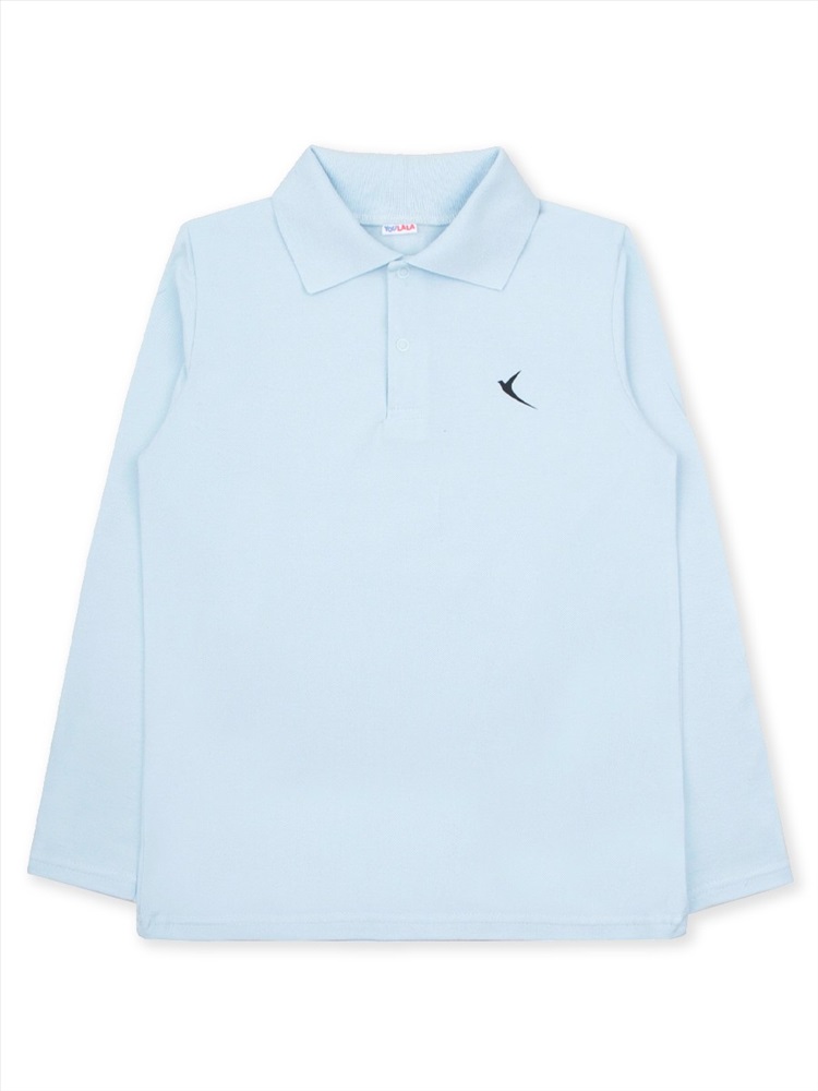 Симпатичное поло для мальчика с длинными рукавами, изготовленное из 100% хлопка - пике. Застёгивается на две кнопочки спереди. Модель украшает небольшой рисунок на полочке.