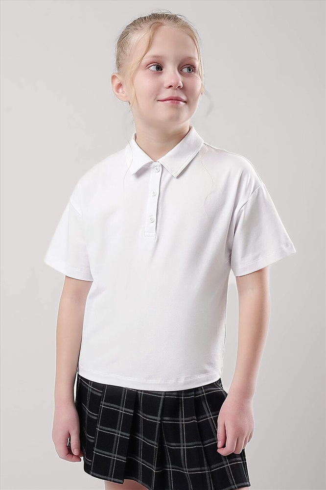 Базовое поло с коротким рукавом станет отличным дополнением к вашему гардеробу! Модель с отложным воротником и планкой на пуговицах. Поло отлично подойдет для создания классных повседневных и школьных образов