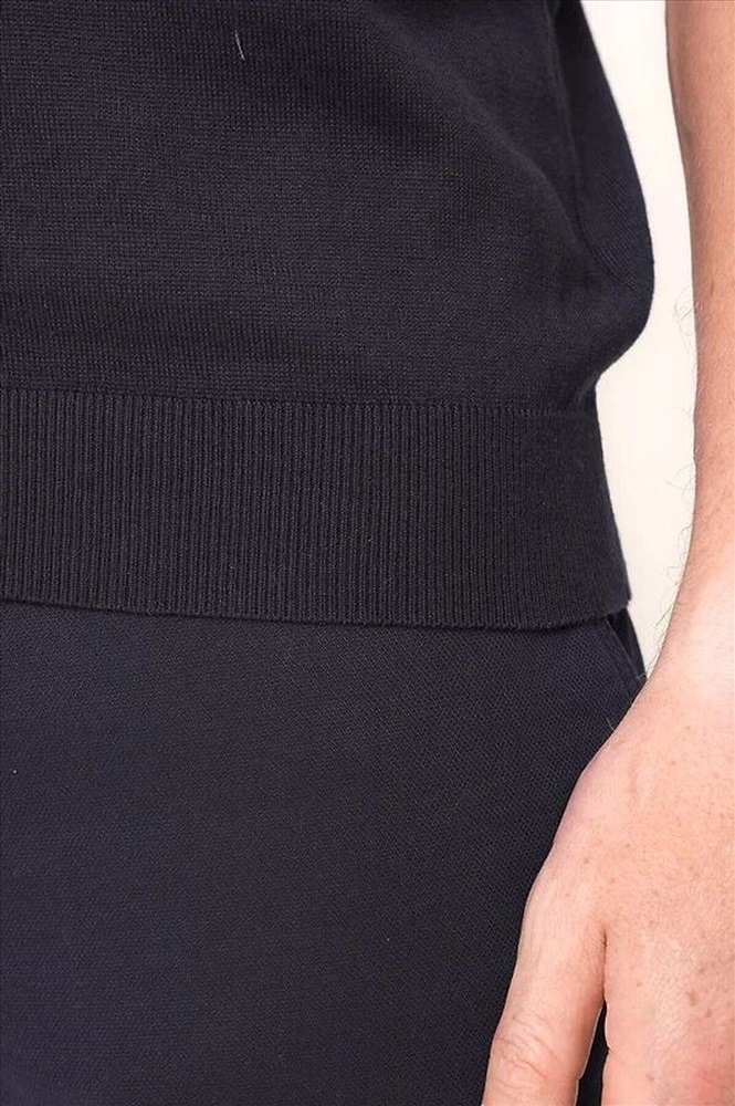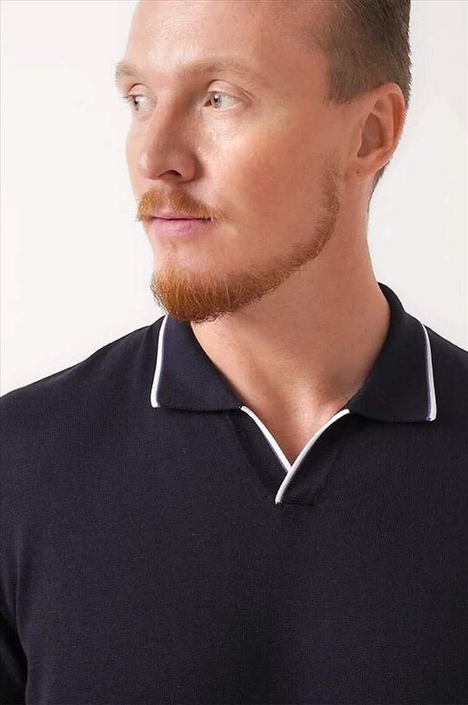 Вязаное поло с V-образной горловиной и отложным воротником. Модель выполнена из смесовой пряжи. Великолепный акцент в вашем гардеробе.