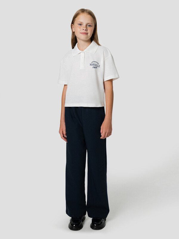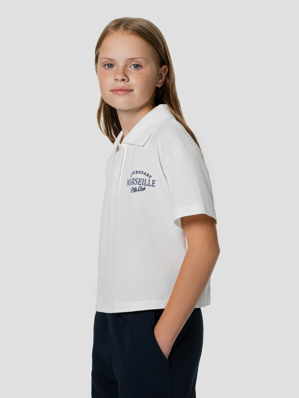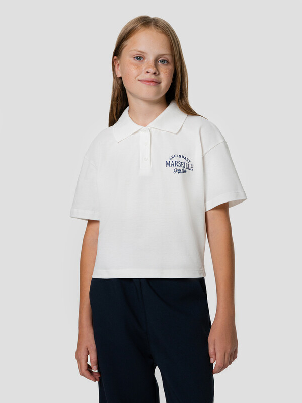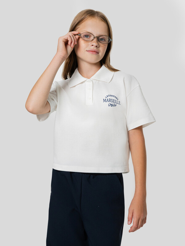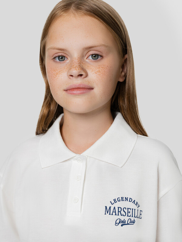 Поло для девочек с надписью "Marseille" — это стильная и комфортная модель, вдохновленная атмосферой французского побережья. Свободный силуэт позволяет двигаться без ограничений, а отложной воротник и застежка на пуговицах придают образу нотки классики. Спущенное плечо и слегка углубленная пройма создают расслабленный, современный силуэт, а короткие рукава идеально подходят для теплой погоды. Изделие выполнено из хлопкового пике — дышащей, приятной к телу ткани с легкой фактурой, что делает эту вещь особенно комфортной для активных будней и прогулок.