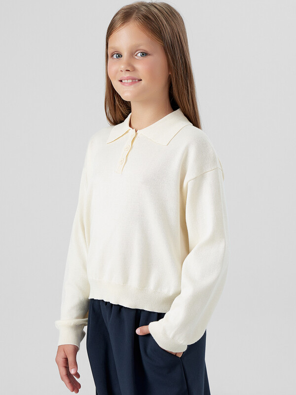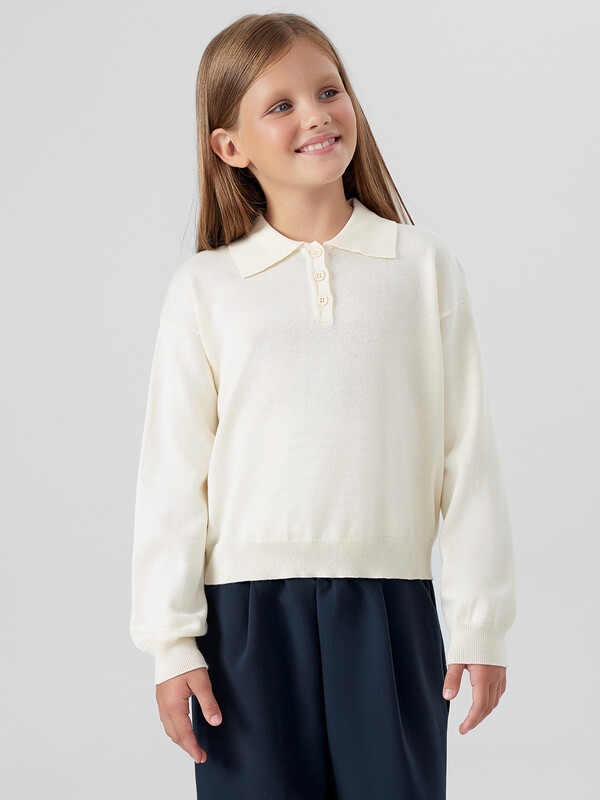 Поло для девочек с длинными рукавами — идеальный вариант для повседневной носки, сочетающий комфорт и аккуратный внешний вид. Модель выполнена с мягко спущенной линией плеча, что обеспечивает свободу движений. Силуэт дополнен аккуратной застёжкой на три пуговицы и элегантными деталями: низ изделия и манжеты рукавов оформлены плотным рубчиком, который подчеркивает завершенность образа.