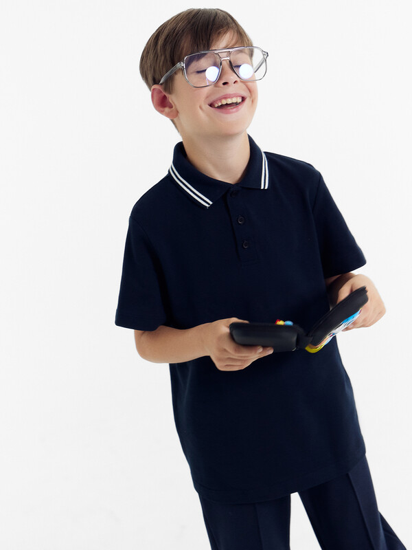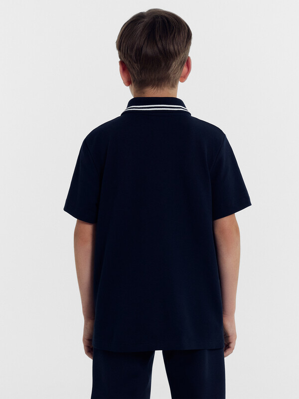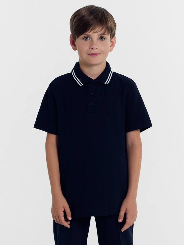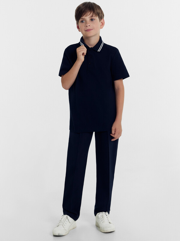 Силуэт прямой. Перед, спинка цельнокроеные. По переду изделия выполнен разрез на застежку на 3 вертикальные петли и пуговицы. В горловину втачен готовый воротник (довяз). Припуск шва втачивания воротника в горловину по спинке окантован бейкой, настроченной по перегибу на спинку между плечевыми швами. Рукава короткие одношовные. Низ изделия и рукавов обработаны швом в подгибку.