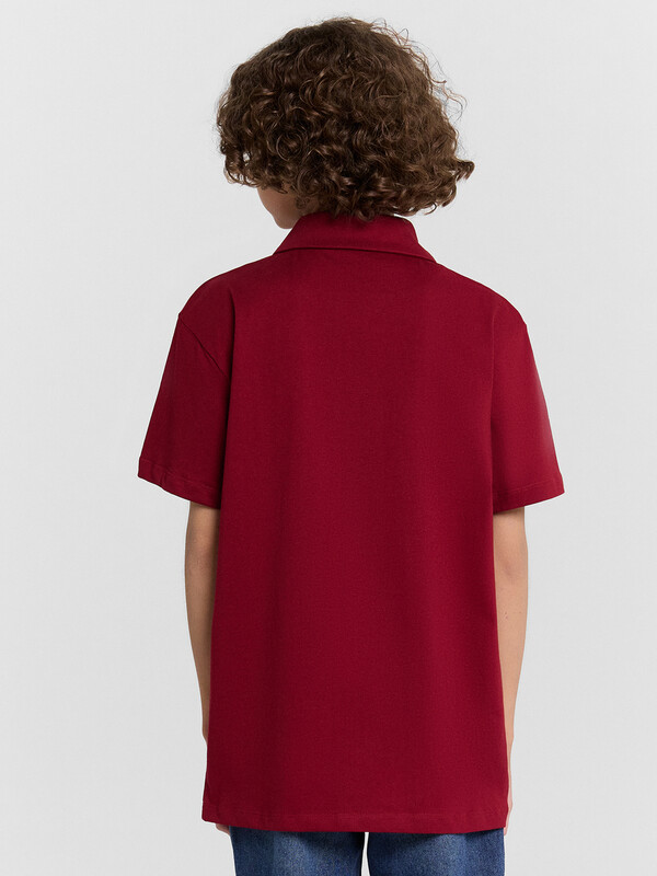 Поло свободного силуэта, перед и спинка цельнокроеные. По переду обработана застежка «поло» на 3 петли и пуговицы (d=10мм). Горловина с воротником стойкой из основного полотна. Рукав втачной, одношовный, плечо спущено. Низу рукава и поло подложены на плоскошовке.