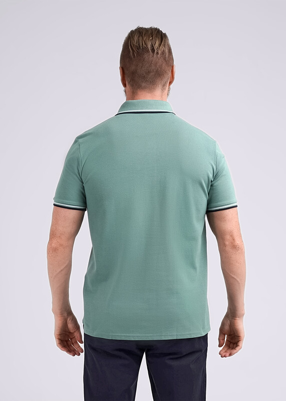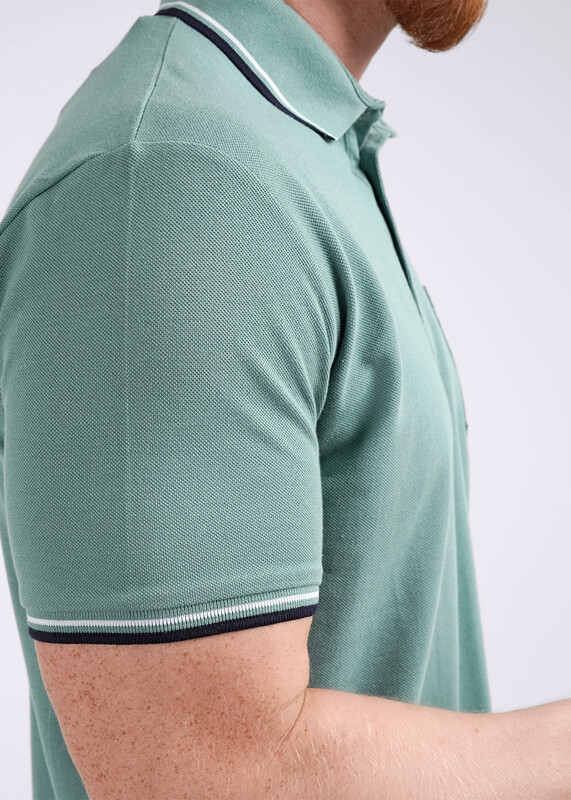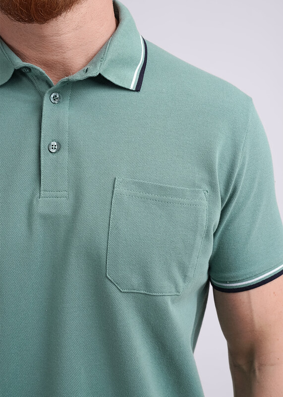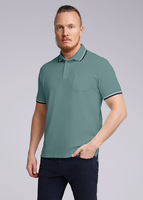 Джемпер с коротким рукавом среднего объема. Воротник отложной вязаный, планка на петли и пуговицы, накладной карман. Низ рукава на вязаной манжете.