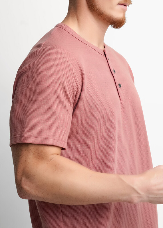 Футболка-поло с воротником-стойка и функциональной планкой на пуговицах, из трикотажного полотна ""вафля"". Изделие дополнено имиджевой фурнитурой и отделочными строчками. Простая и удобная модель, идеально подходящая для повседневного гардероба.