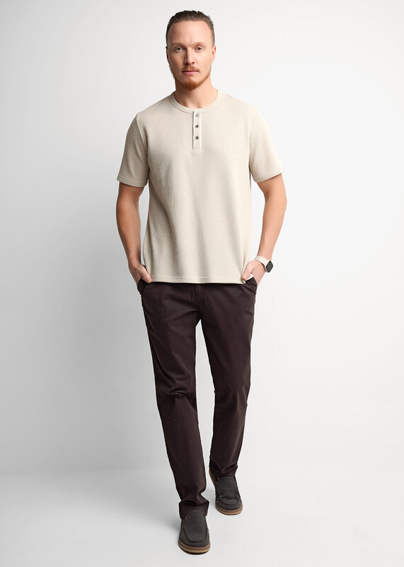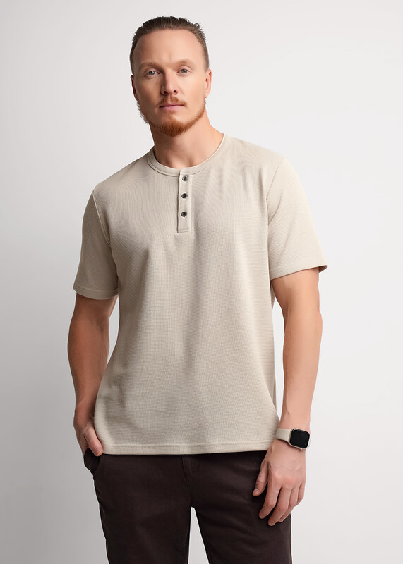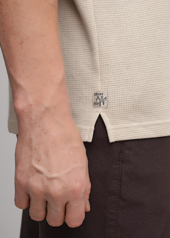 Производитель: Clever Футболка-поло с воротником-стойка и функциональной планкой на пуговицах, из трикотажного полотна ""вафля"". Изделие дополнено имиджевой фурнитурой и отделочными строчками. Простая и удобная модель, идеально подходящая для повседневного гардероба.