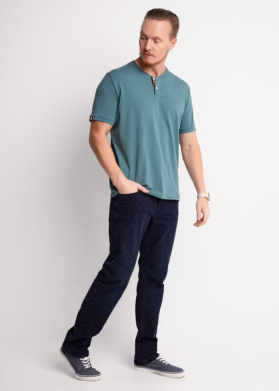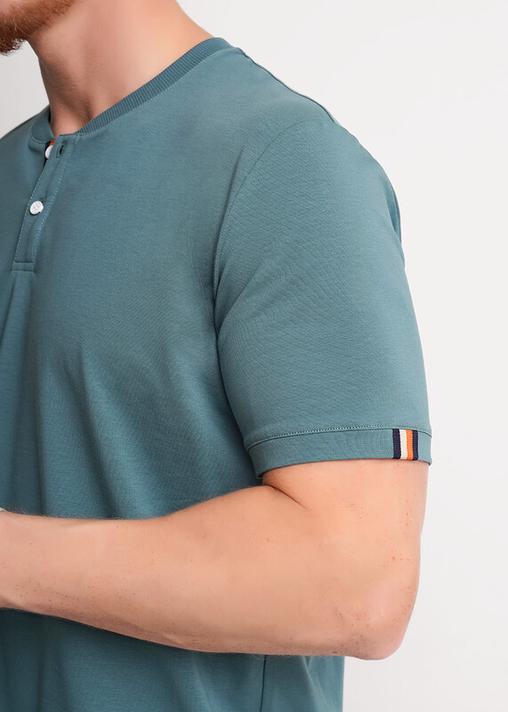 Футболка мужская с круглым вырезом горловины, планкой с пуговицами и с коротким втачным рукавом на манжете. Выполнена из трикотажного полотна. Изделие дополнено имиджевой фурнитурой, благодаря этому образ выглядит стильным и завершенным.