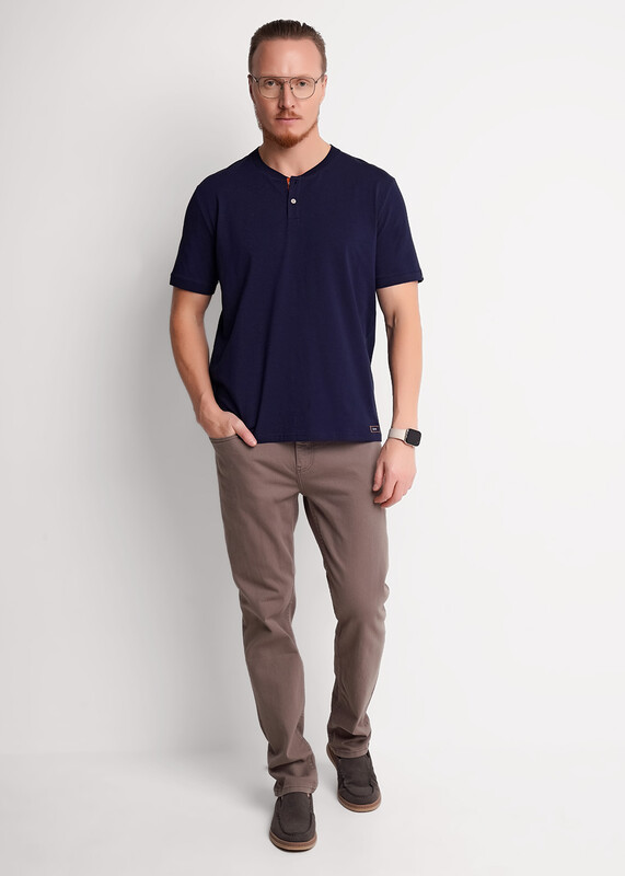 Футболка мужская с круглым вырезом горловины, планкой с пуговицами и с коротким втачным рукавом на манжете. Выполнена из трикотажного полотна. Изделие дополнено имиджевой фурнитурой, благодаря этому образ выглядит стильным и завершенным.