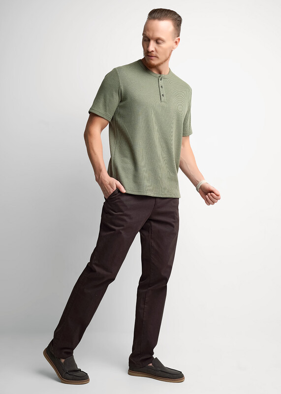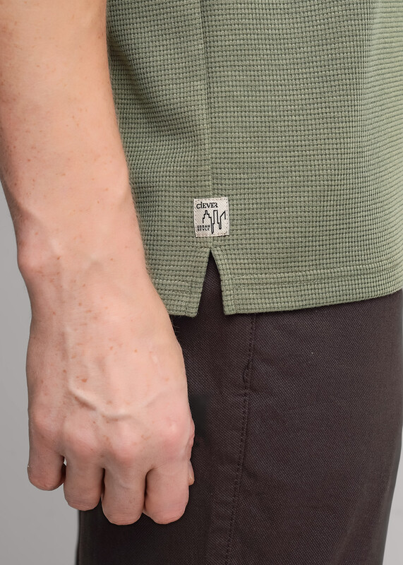 Производитель: Clever Футболка-поло с воротником-стойка и функциональной планкой на пуговицах, из трикотажного полотна ""вафля"". Изделие дополнено имиджевой фурнитурой и отделочными строчками. Простая и удобная модель, идеально подходящая для повседневного гардероба.