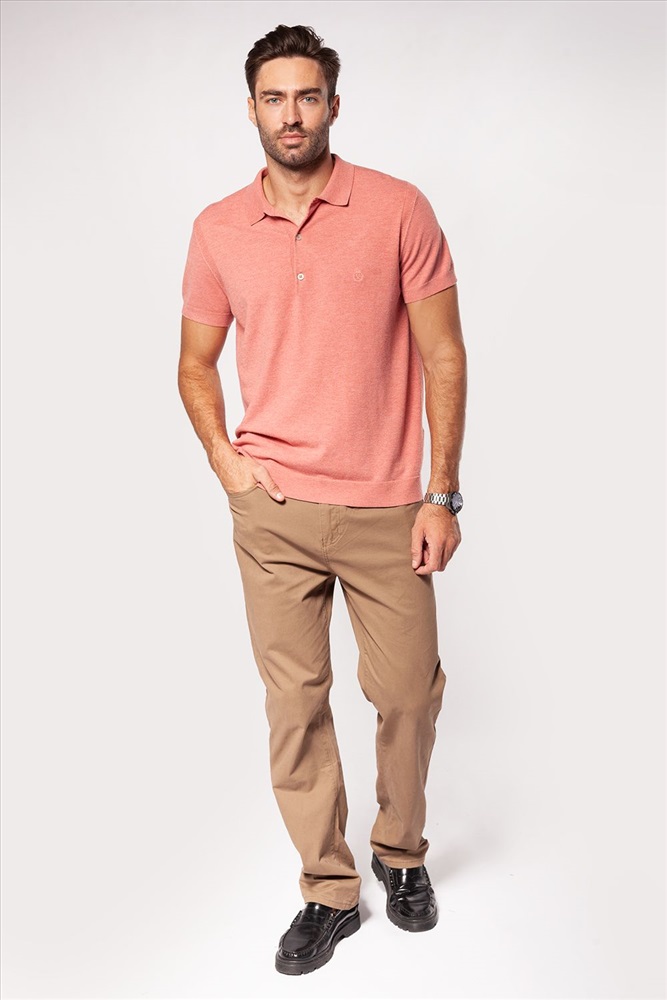 Поло терракотового цвета с эффектом меланж тонкой вязки из 100% хлопка. Отборные волокна хлопка исключительно мягкие, поэтому изделие легкое и шелковистое на ощупь. Идеальное решение для весны и лета. Офисного дресс-кода и повседневного образа. Модель дополнили вышитым логотипом бренда.