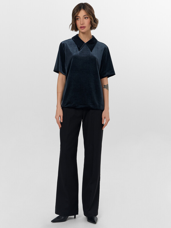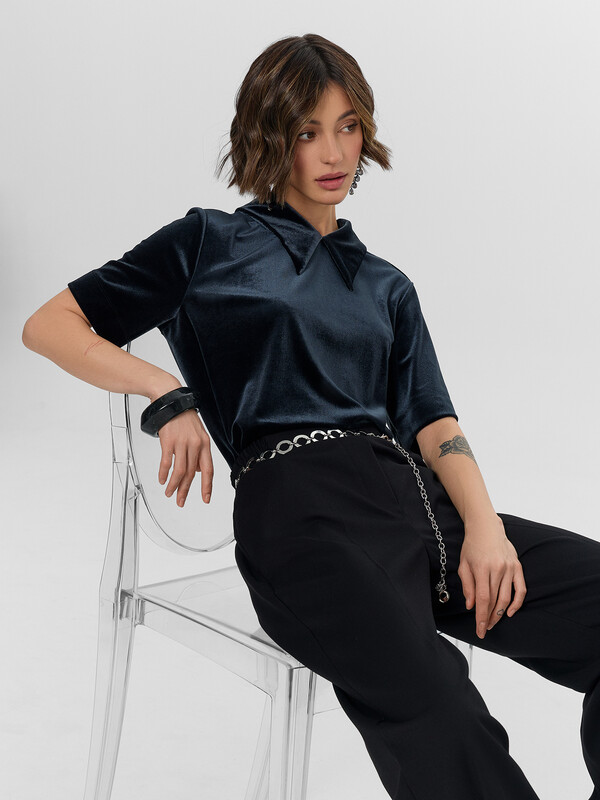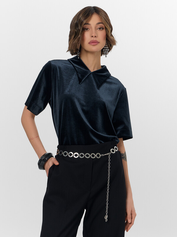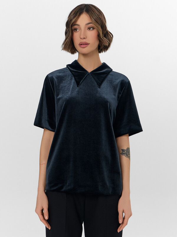 Женское поло прямого кроя станет универсальным решением для новогоднего торжества и праздничных мероприятий. Свободный силуэт без боковых швов обеспечивает комфорт в течение всего вечера. Короткие рукава и отложной воротник сохраняют элегантный стиль, идеальный для торжественных событий.