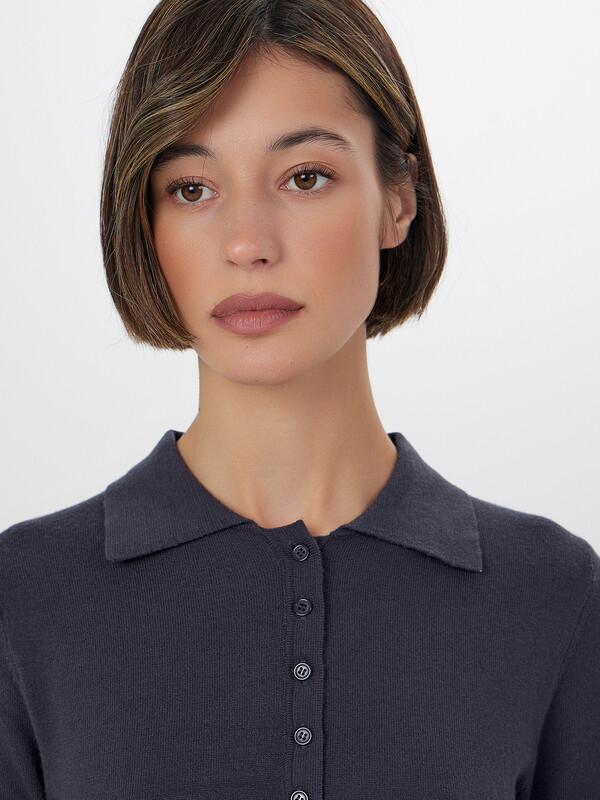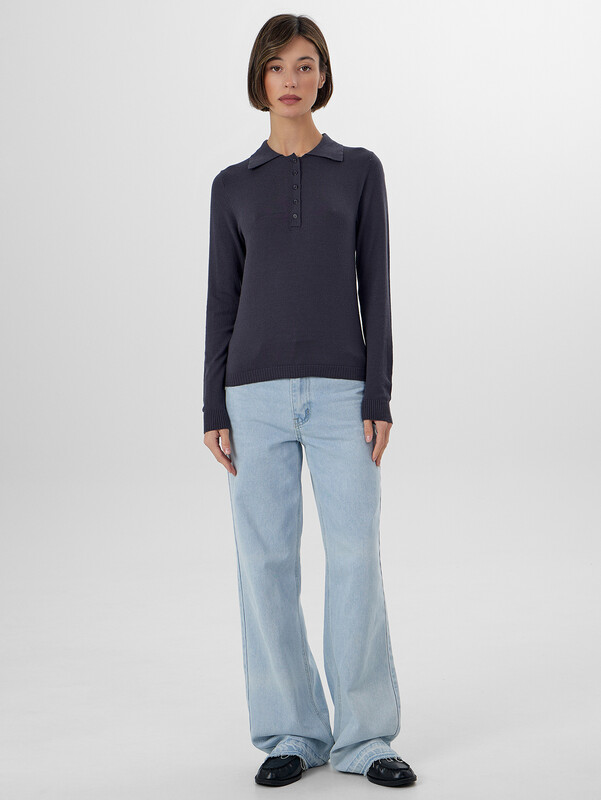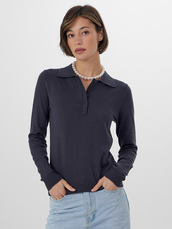 Женское поло с длинным рукавом объединяет в себе элегантность повседневного стиля и комфорт. Классический воротник и застежка на пять пуговиц создают аккуратный, выразительный силуэт, который уместен и в офисе, и на прогулке, и на дружеской встрече. Модель выполнена из особой смеси вискозы и нейлона — это сочетание дарит мягкость и легкий шелковистый блеск, при этом ткань достаточно упругая, чтобы хорошо держать форму.