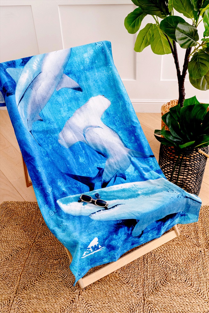 Модель: Полотенце пляжное махровое 70*140, 100 % хлопок, Акулы