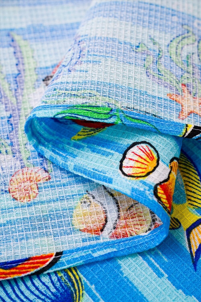 ID товара: 999863 Состав: 100% Хлопок Сезон: Весна/Лето Вид ткани: Вафельное полотно Страна бренда: Россия Страна производства: Россия Это пляжное полотенце с рыбками - идеальный выбор для вашего отдыха на пляже или в бане. Размер 80*150 см делает его удобным и практичным для использования как полотенце для пляжа, так и накидки на шезлонг. Высокая впитываемость этого вафельного полотна обеспечит вам комфорт и сухость после купания. Изготовлено из 100% хлопка, это полотенце с петелькой прекрасно подойдет для посещения бани или сауны. Его зелено-голубой цвет приятно гармонирует с морской тематикой и создает атмосферу спокойствия и уюта. Помимо использования на пляже, вы также можете использовать его как пляжный коврик для отдыха на песке. Не упустите возможность приобрести это удобное и стильное полотенце для вашего отдыха! Комментарии к товару
