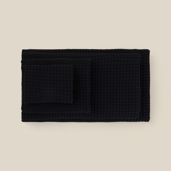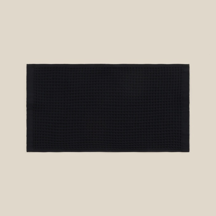 Почему это практичное решение Вафельная структура полотна создаёт воздушную прослойку, улучшая впитываемость и ускоряя высыхание самого полотенца. Плотный хлопок сохраняет форму после множества стирок, не теряя своих свойств. Чёрный цвет практичен в ежедневном использовании и легко сочетается с любым интерьером. Это полотенце — простая и надёжная основа для вашего повседневного ритуала. Комментарии к товару