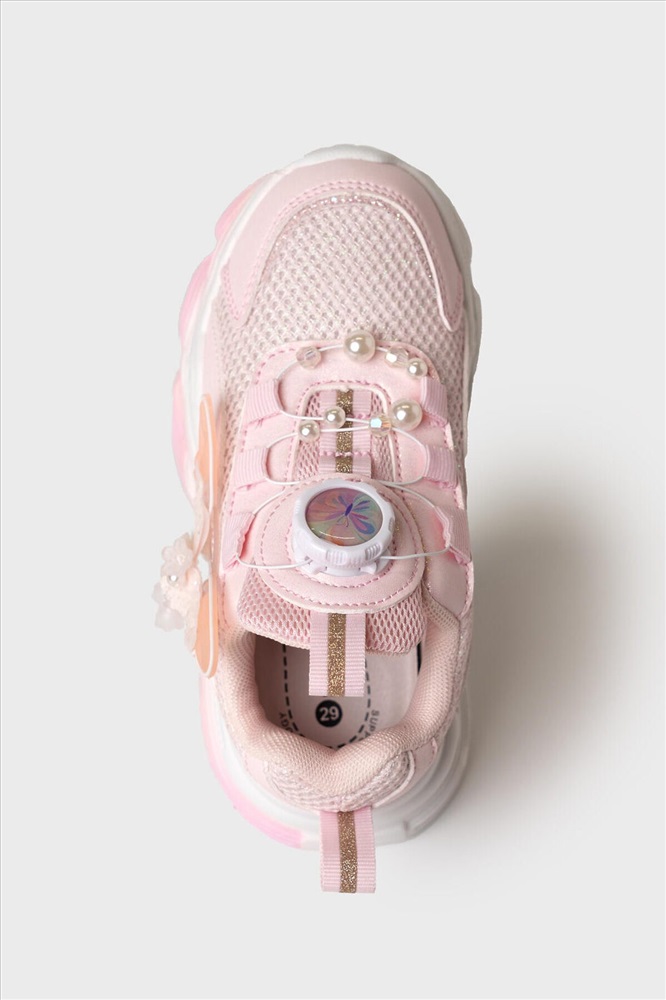 Кроссовки для девочки с системой быстрой шнуровки Кроссовки выполнены из дышащего текстиля и искусственной кожи с повышенной износостойкостью. Сбоку кроссовки декорированы объемной бабочкой. Профилированная съемная стелька из натуральной кожи с анатомической формой подсводника обеспечивает правильную нагрузку на стопу. В носочной части обуви стоит текстильная подкладка c высоким содержанием хлопка 80%, которая обладает высокой гигроскопичностью. В пяточной части обуви текстильная подкладка обладает хорошей износостойкостью. Кроссовки имеют светоотражающие элементы. Формоустойчивый задник поддерживает стопу в правильном положении. Эргономичная форма колодки обеспечивает правильное формирование стопы ребенка. Подошва из ЭВА очень легкая и гибкая.