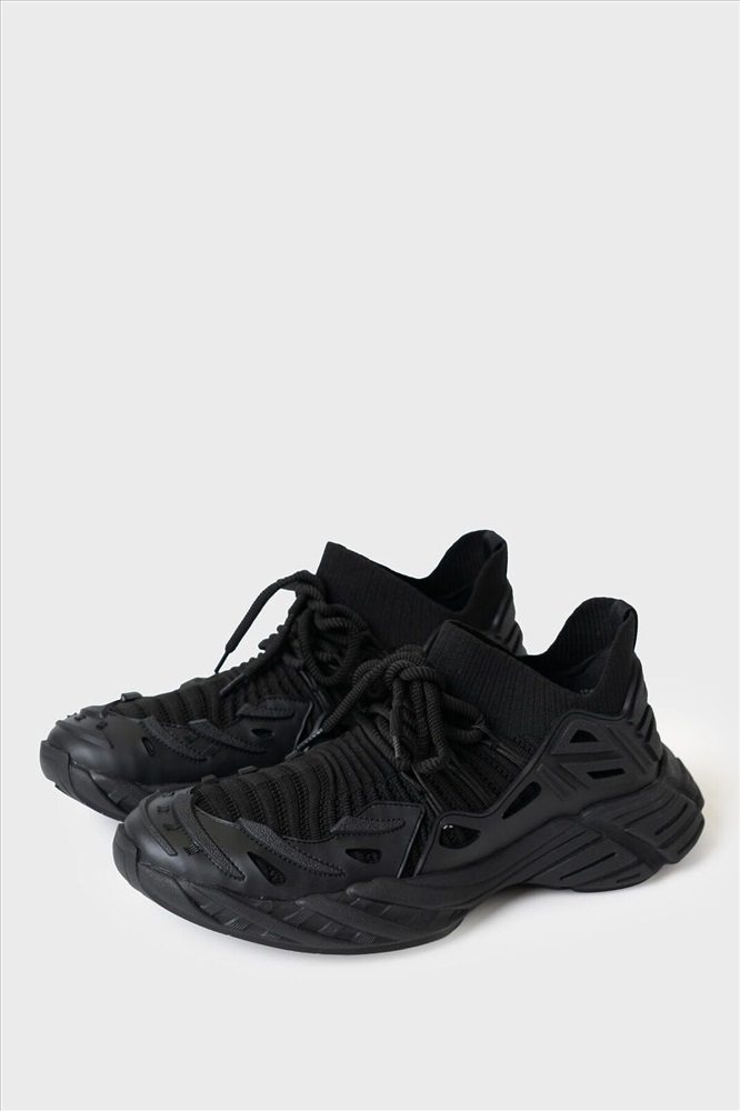 ID товара: 1241190 Состав: 100% полиэстер; 100% резина Сезон: Весна/Лето Трендовые кроссовки футуристической формы мужские. Верх кроссовок выполнен по технологии socks из тянущегося дышащего трикотажа. Их можно обувать не развязывая. Нижняя часть защищена крупной ПВХ деталью. Крупные шнурки придают актуальности модели. Стелька - текстильная, съемная. Для придания прочности подошва дополнительно пристрочена к верху. Комментарии к товару