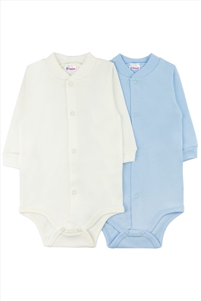 Боди 2 шт для новорожденных с длинными рукавами, воротник - стойка, застежка на кнопках.