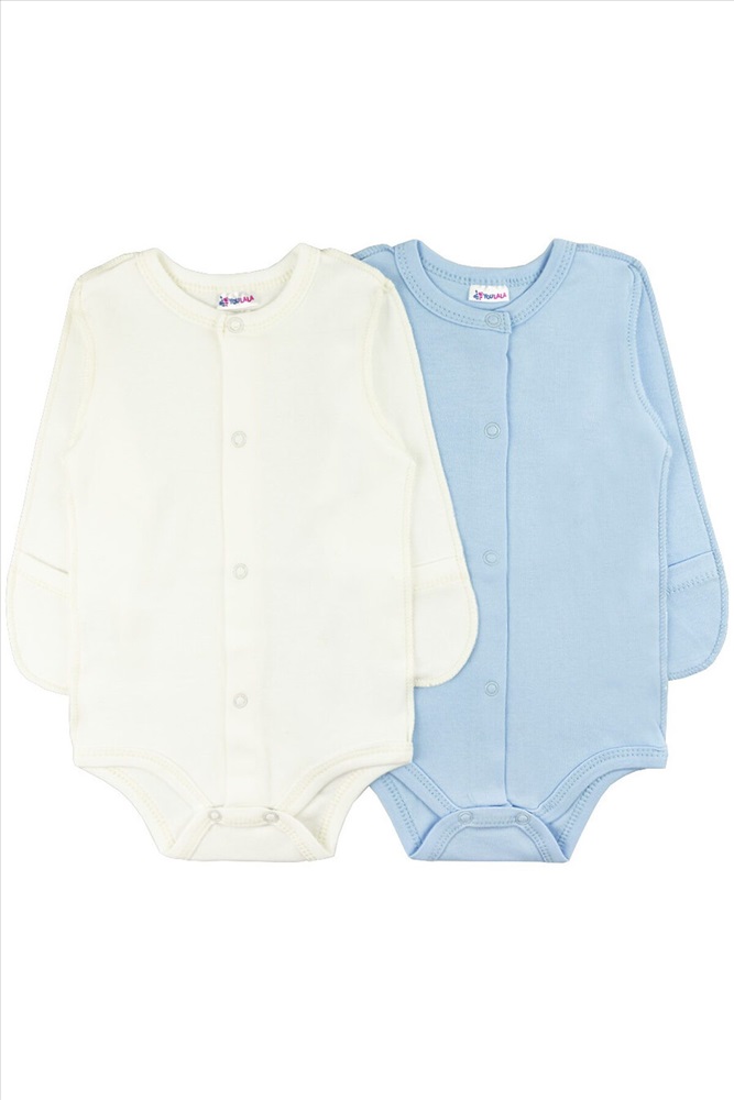 Комплект полукомбинезонов - боди 2 шт для новорожденного, с длинным рукавом, на кнопках, белого и голубого цвета.