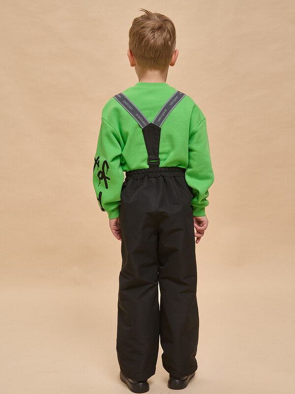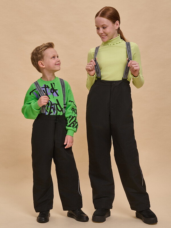 Брюки детские демисезонные из курточной ткани с влагоотталкивающей пропиткой. Идеальная модель на сырую и грязную погоду. Подходит как мальчикам, так и девочкам. Благодаря продуманному крою хорошо садятся на детей с любой фигурой. Штаны застёгиваются на молнию и кнопку. Отстёгивающиеся эластичные лямки регулируются по длине — дети дошкольного и младшего школьного возраста могут носить брюки с ними, дети постарше могут их отстегнуть. Лямки украшает лого бренда. По низу внутренняя утяжка на эластичный шнур со стопперами — можно менять силуэт брюк: прямые или затянутые. По бокам наклонные карманы — удобно пользоваться. В боковых швах светоотражающие элементы — безопасность в тёмное время суток. На коленях усилители с вытачками для удобства. За штанами легко ухаживать — согласно рекомендациям, указанным на вшивных ярлыках. Модель выполнена из полиэстера — брюки тёплые, лёгкие, просто стираются, быстро сохнут, сохраняют отличную форму и цвет надолго. Внутри штанов гладкая подкладка для удобства надевания. Брюки детские выполнены в универсальном цвете. Их легко сочетать с различными куртками и пальто. Осенние прямые брюки подходят для девочек и мальчиков дошкольного, младшего школьного возраста, а также подростков. Рекомендуемый температурный режим: не ниже минус 5 градусов. Утеплитель: синтепон 60 г/м2. Брюки детские чёрные идеальны для носки в школу, для прогулок и активного отдыха, спорта. Помните о правильном уходе за изделием: рекомендуется стирать при температуре не выше 30 °C, без предварительного замачивания, с изнанки. Это поможет сохранить качество и цвет куртки на длительное время.