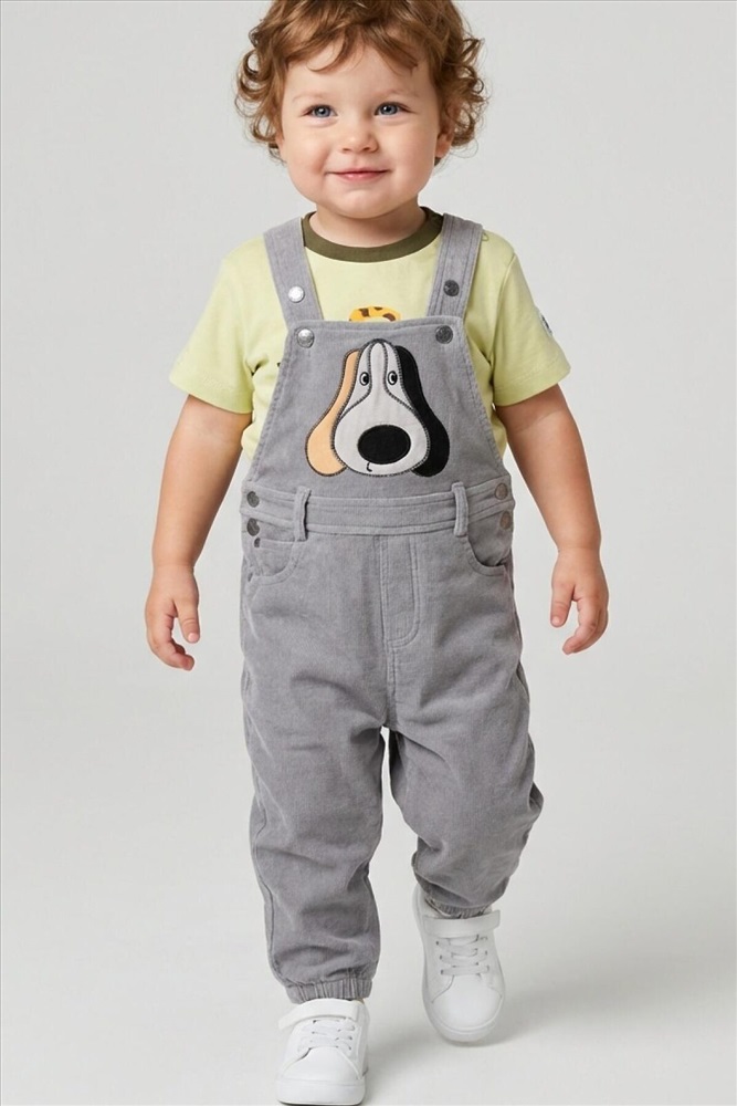 ID товара: 1240233 Состав: 60% хлопок, 38% полиэстер, 2% эластан Сезон: Весна/Лето Детский трикотажный полукомбинезон для мальчика. Модель выполнена в сером цвете под джинсу. Спереди на грудке — яркая и милая аппликация в виде собаки. Спинка украшена двумя задними карманами. Штанины с мягкой сборкой на резинке. Лямки перекрещиваются на спине и застёгиваются на кнопки спереди. Изделие имеет удобные боковые застёжки на кнопках и резинку на поясе сзади для комфортной посадки. Комментарии к товару