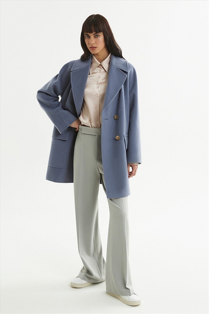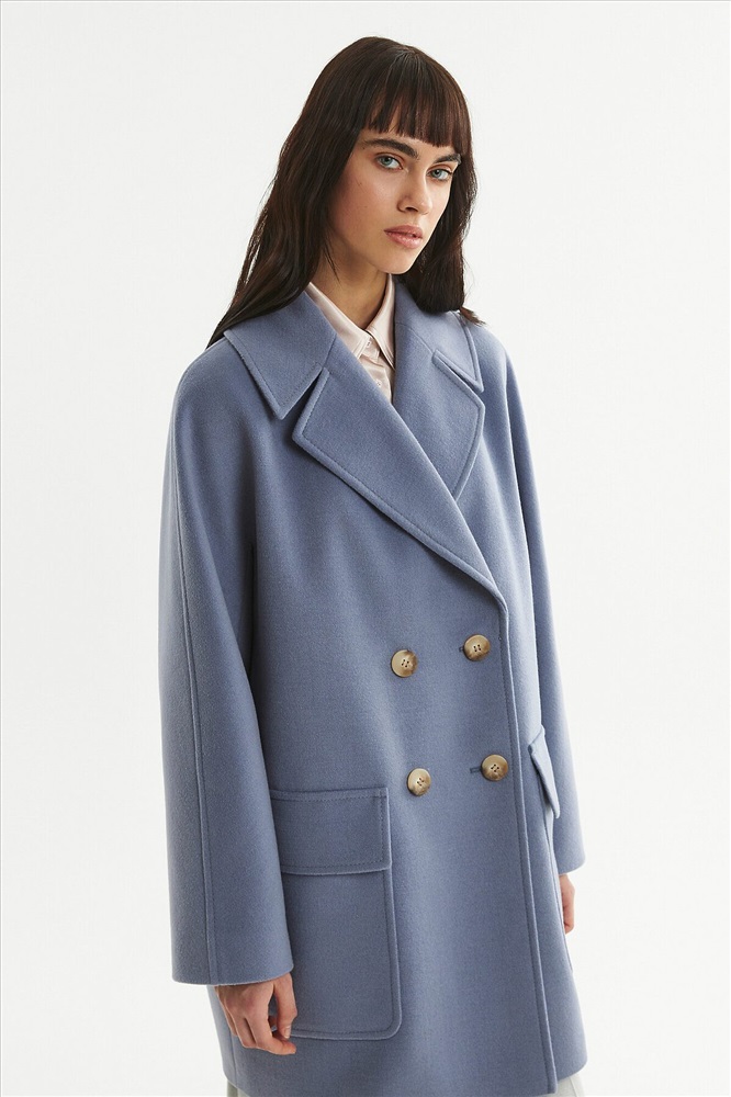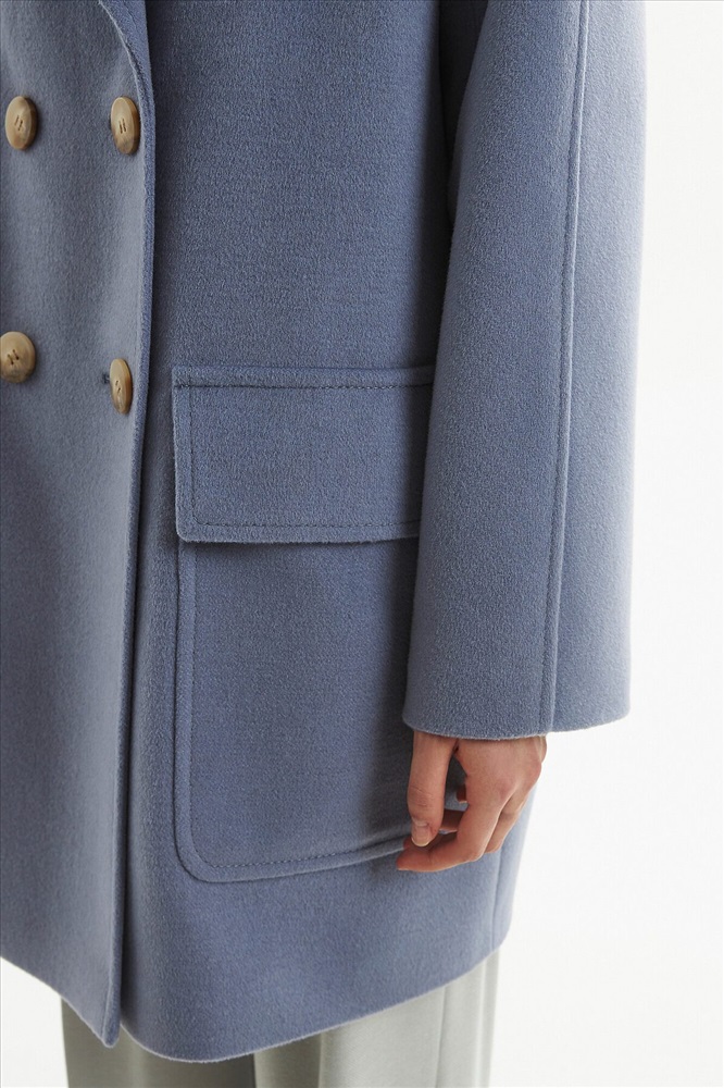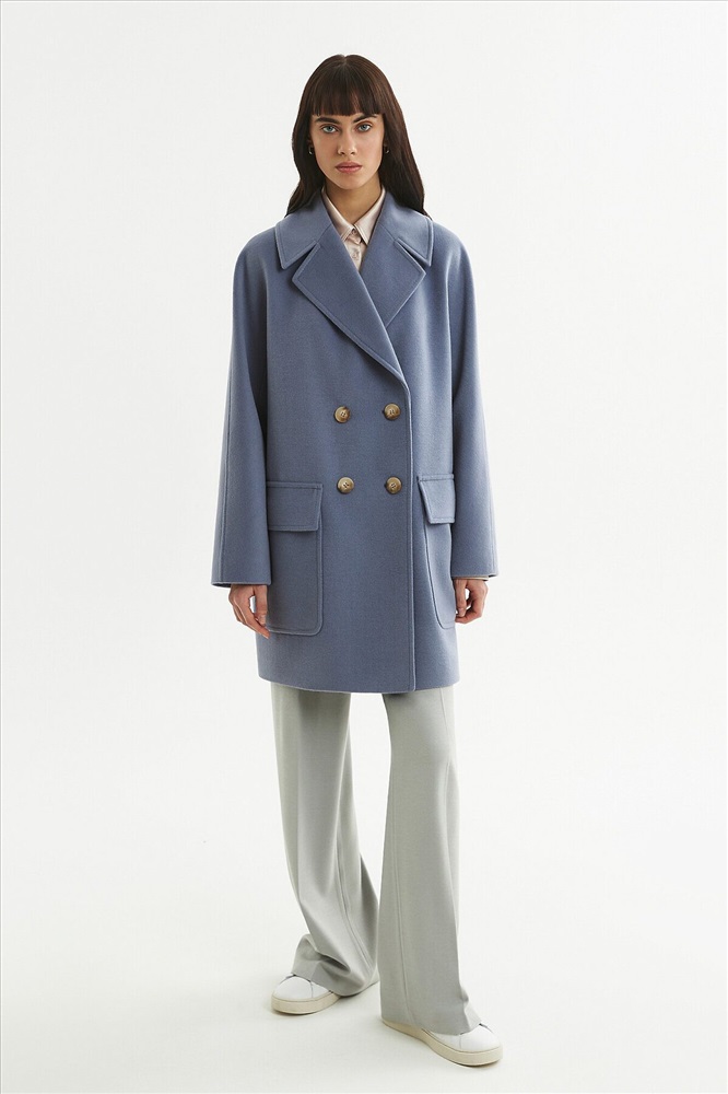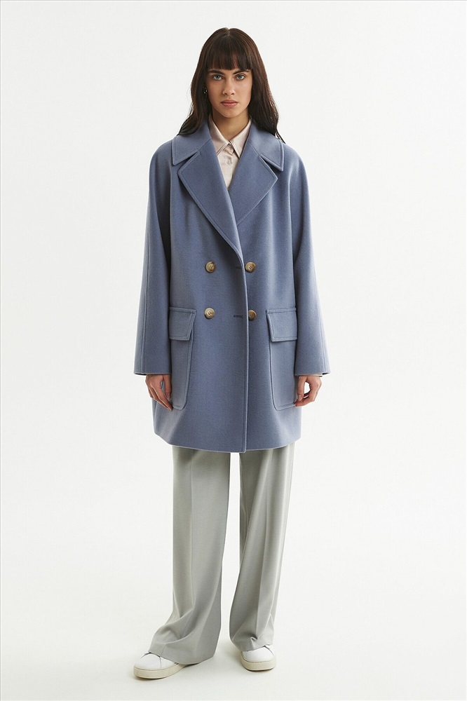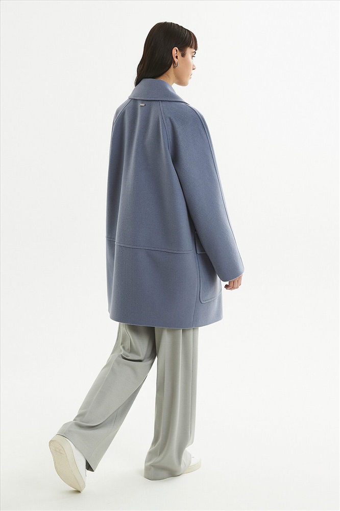 ID товара: 990281 Состав: Основная ткань- Шерсть 50%, Полиэстер 50%- Полиэстер 55%, Вискоза 45% Сезон: Демисезон Длина: Средняя Фасон: Прямой Рукав: длинные Вид застежки: Пуговицы Тип карманов: Накладные Стиль: кэжуал Страна бренда: Россия Страна производства: Россия Двубортное укороченное пальто силуэта "кокон" из ворсовой пальтовой ткани нежного весеннего серо-голубого оттенка. Полупальто универсальной длины выше колена, с широким английским воротником и комфортным рукавом уникальной комбинированной конструкции: цельнокроеный спереди и реглан на спинке. Функциональным декоративным элементом служат большие накладные карманы с клапанами. Остроты пальто добавляют широкие отделочные строчки. Застежка на два ряда стильных пуговиц под натуральный рог. Благодаря высокому содержанию шерсти пальто очень уютное и теплое. А для дополнительной защиты от непогоды изделие выполнено с использованием высокотехнологичной мембраны RaftPro. Произведено в Санкт-Петербурге. Комментарии к товару