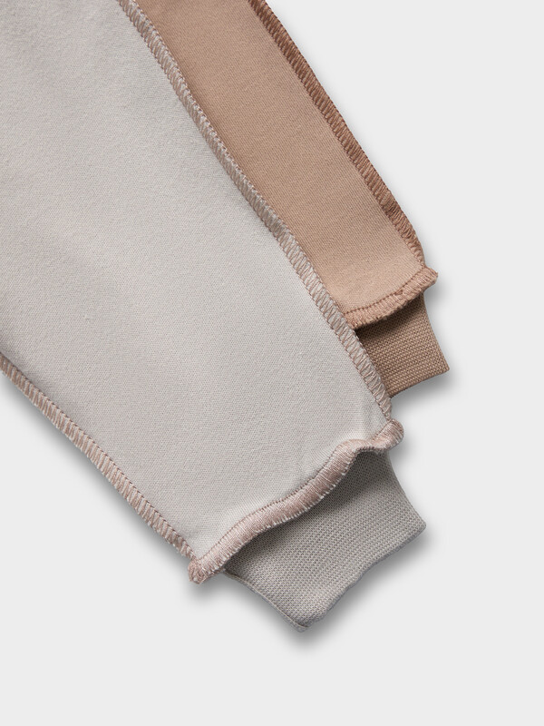 Пояс с широкой эластичной резинкой внутри мягко фиксируется на талии, не сдавливая и не оставляя следов. Дополнительная хлопковая тесьма в поясе усиливает удобство и долговечность. Низ ползунков обработан манжетами из мягкой рибаны, которые нежно облегают ножки, предотвращая сползание.