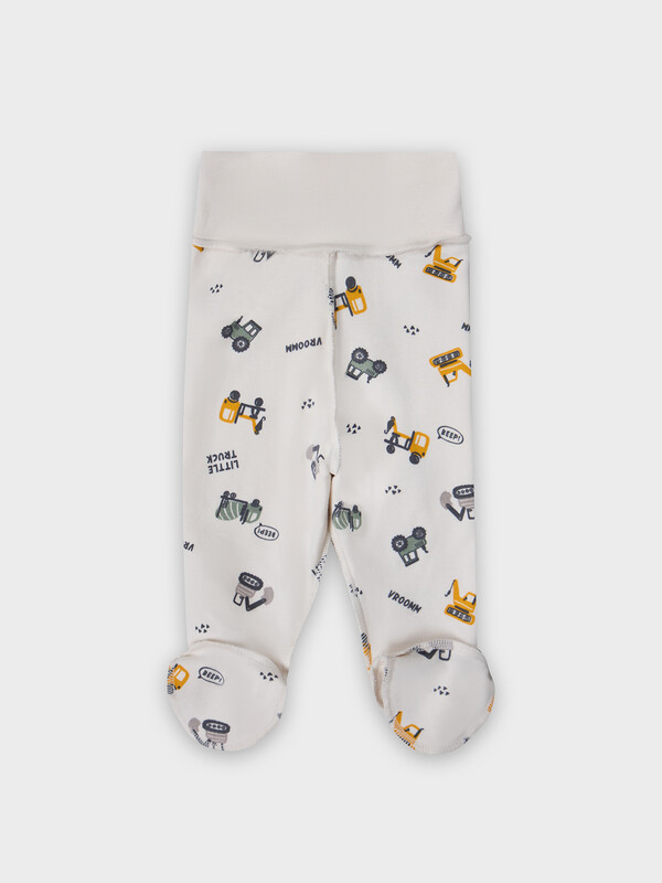 Ползунки с закрытыми ножками для 1-3 месяцев (рост 56-62), выполнено из интерлока. Швы на лицевой стороне изделия. Ползунки со средним швом и без боковых. По верхнему краю широкий притачной пояс из трикотажной рибаны 1*1 R-59, R11-049.01.230, 97% хлопок; 3% эластан, 230 гр, 165 см. По низу изделия притачной носочек и следочек.