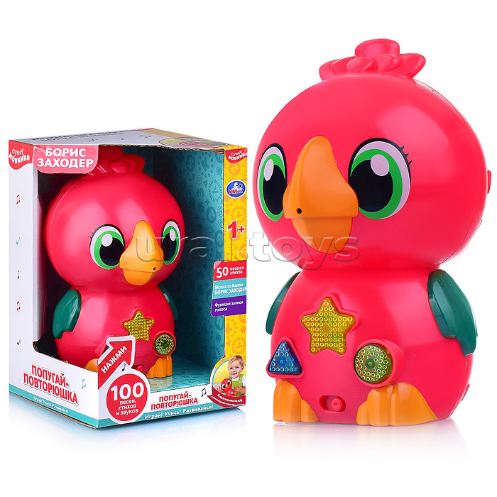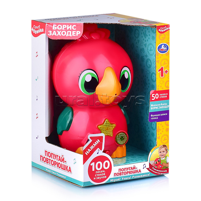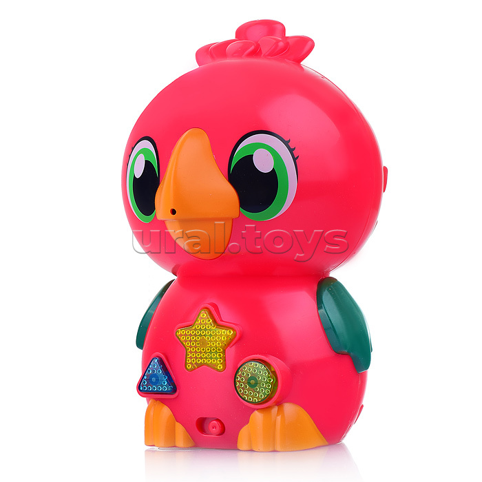 • Размеры игрушки: 12х12х20 см. • Функции звукового модуля: - 100 песен, стихов, звуков. - запись голоса. • Работает от 3-х батареек "ААА" (входят в комплект для демонстрации.) • Материал: пластик. • Соответствует требованиям безопасности и стандартам качества продукции. • Для детей от 1 года.