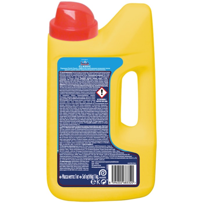 Габариты: 24 x 13 x 7 Доставка: Платная Страна: Россия В боксе: 8 шт Состав: См. на упаковке Материалы: см. на упаковке Фасовка: по 1 шт Индивидуальная упаковка: Без упаковки Габариты товара: 2,3 см × 1,2 см × 0,6 см Сертификат: Не подлежит сертификации Вес, кг: 1 Порошок Finish Classic – удобный формат средства для посудомоечной машины, который позволяет вам самостоятельно дозировать продукт, исходя из степени загрязнения и заполненности вашей посудомойки. Finish Classic с эффектом замачивания позволяет легко удалить даже самые трудновыводимые загрязнения. Экономичное решение для чистоты Вашей посуды. При использовании порошка Finish Classic для достижения максимального результата и при очень жесткой воде рекомендуется применение специальной соли Finish и ополаскивателя Finish. Состав: менее 5%: неионогенные ПАВ, отбеливающие вещества на основе кислорода, поликарбоксилаты, фосфонаты, энзимы, ароматизирующие добавки, в т.ч. лимонен. Комментарии к товару