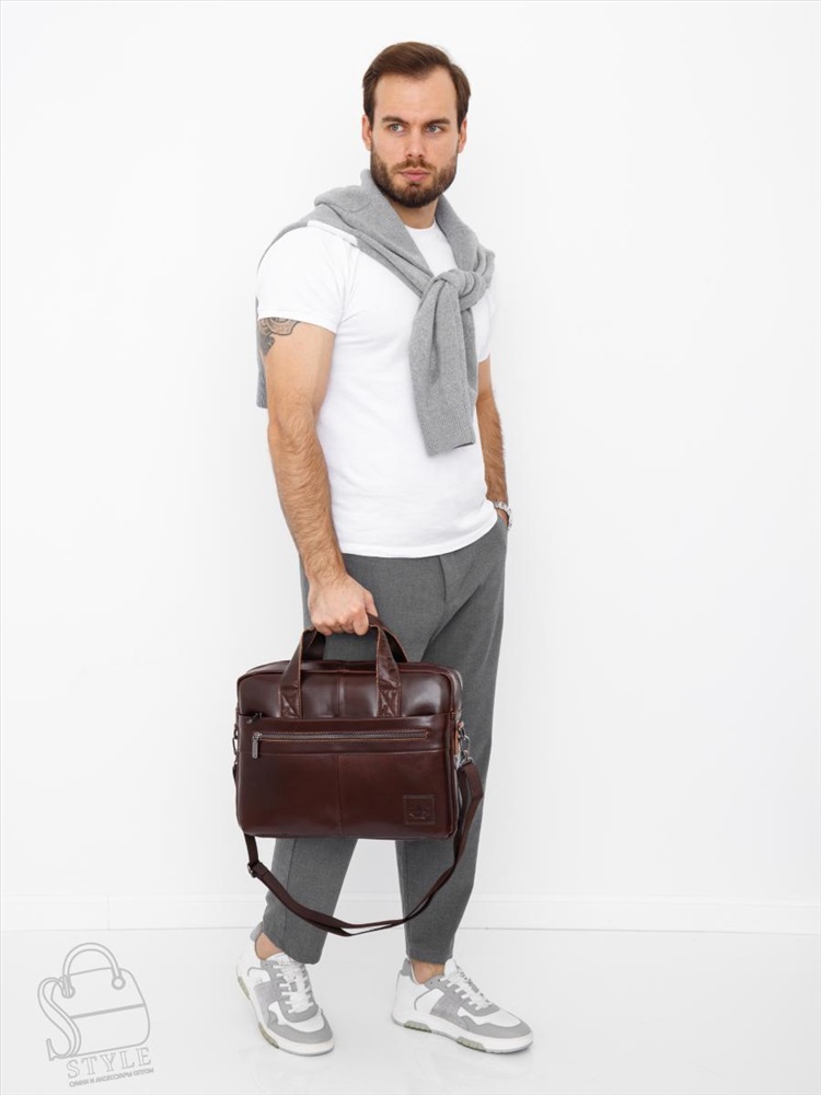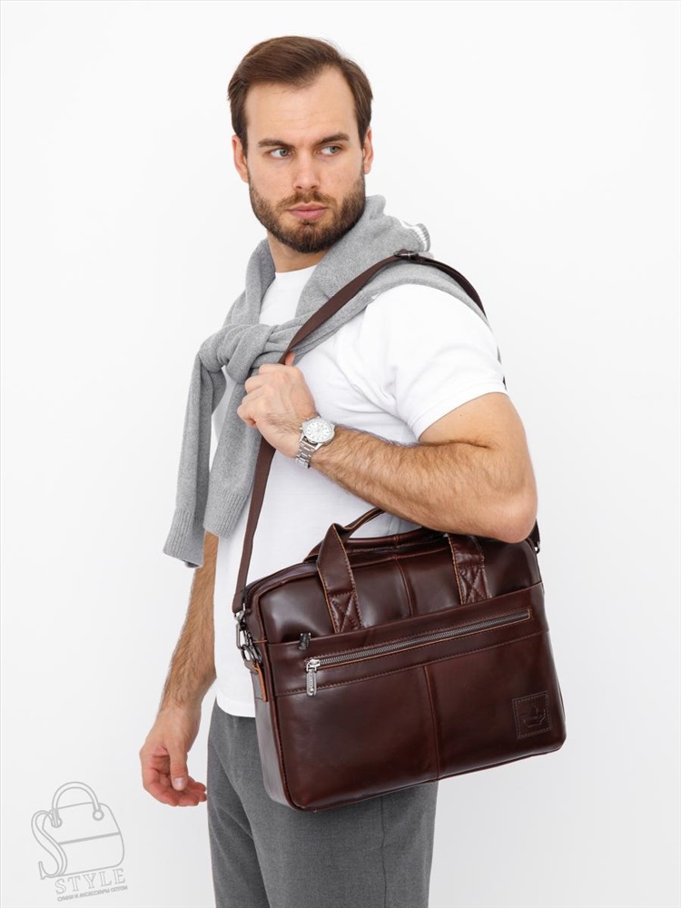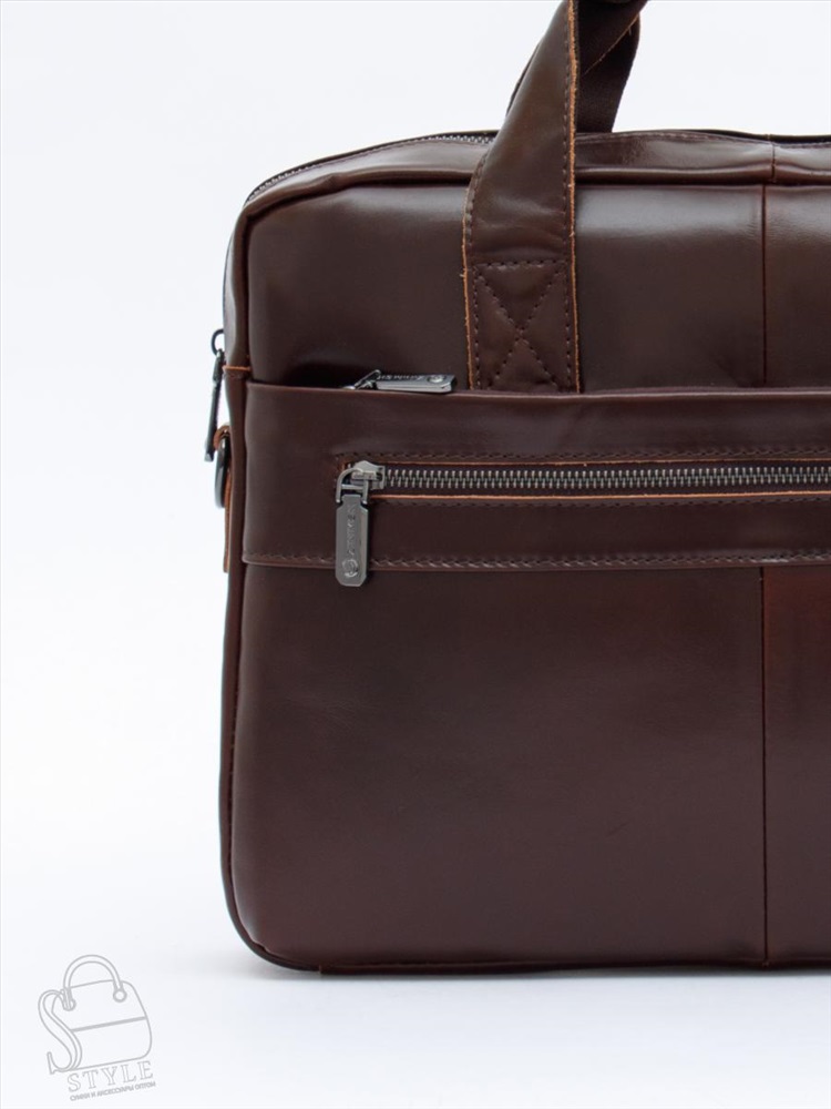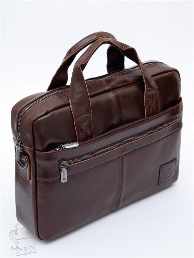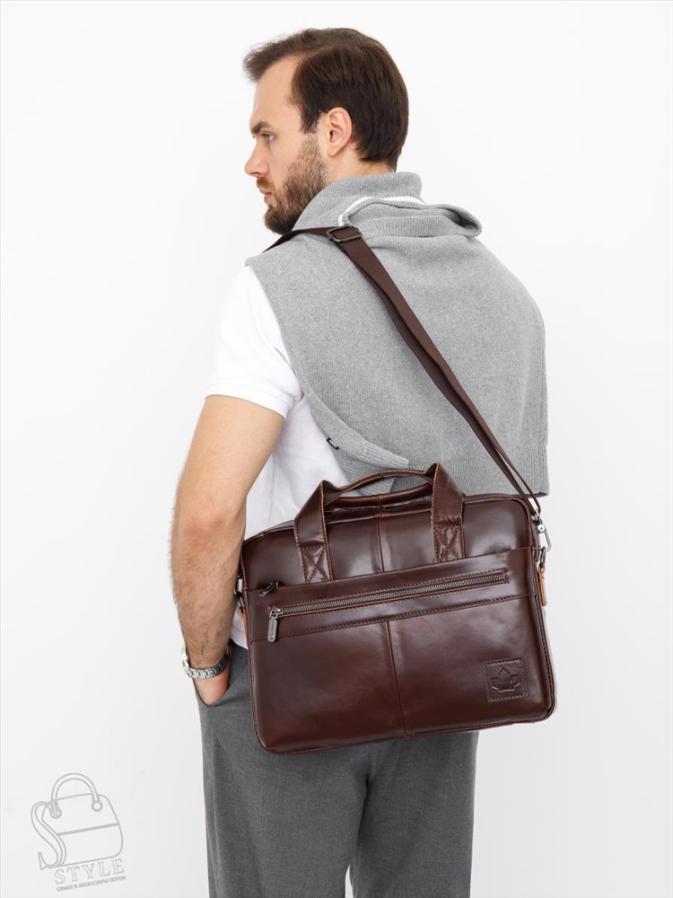 Артикул: 11011Z brown Материал: Натуральная кожа Цвет: Кофейный Ширина (см): 8 Длина (см): 37 Высота (см): 29 Высота ручки (см): 6 Вес (г): 1050 Мужской портфель. Снаружи отдел на молнии. На передней части два кармана на молниях. На задней части карман на молнии. Внутри подкладочный материал, на боковой стенке карман на молнии для ценных вещей, есть отдел для пк. В комплекте имеется плечевой ремень-стропа с регулировкой длины. Каркас полужёсткий. Комментарии к товару