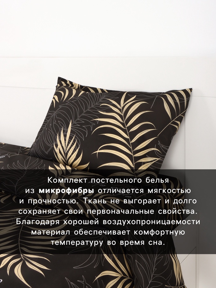 Чёрно-золотое постельное бельё «Экономь и Я» на 1.5 спальных места из микрофибры поможет создать уютное пространство для отдыха, где каждый вечер превращается в момент гармонии с собой. Оно учитывает потребность в практичности и красоте, позволяя сосредоточиться на сне и восстановлении сил без лишних хлопот.
