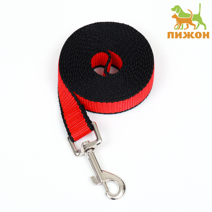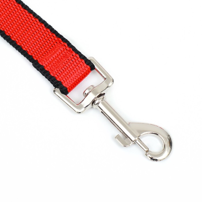 Он имеет длину 2 м х 2 см, представлен в красно- чёрном цвете. Оснащен карабином на одном конце, чтобы легко присоединить его к ошейнику или наморднику животного.