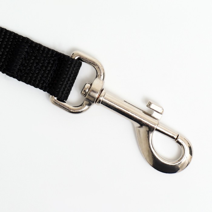 Он имеет длину 3 м х 2 см, представлен в чёрном цвете. Оснащен карабином на одном конце, чтобы легко присоединить его к ошейнику или наморднику животного.