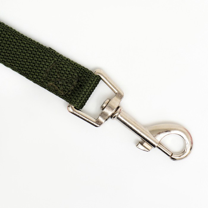 Он имеет длину 5 м х 2 см, представлен в зелёном цвете. Оснащен карабином на одном конце, чтобы легко присоединить его к ошейнику или наморднику животного.