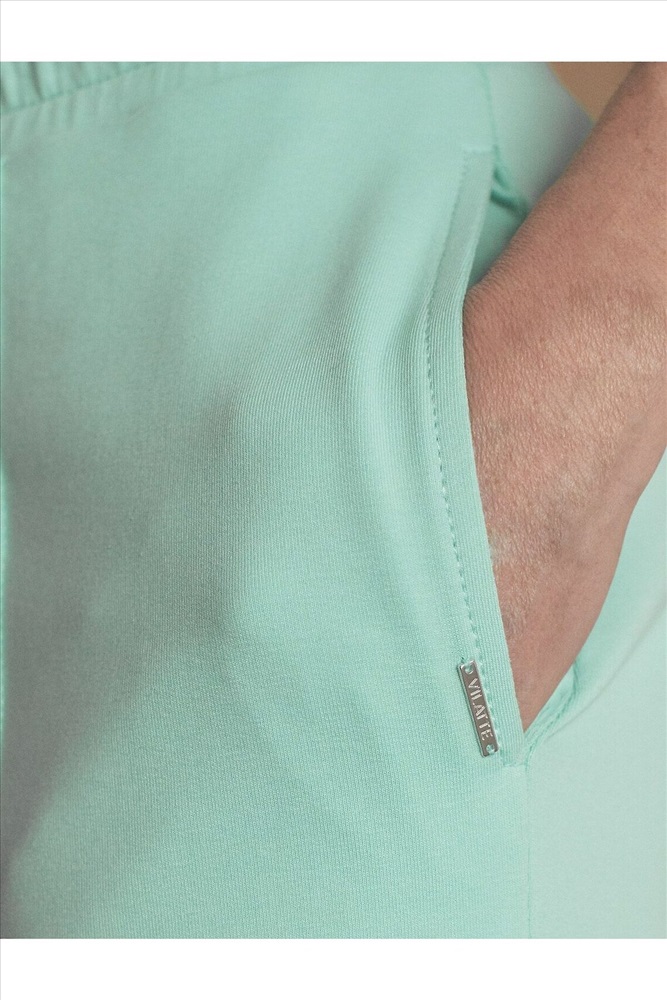 Брюки мятного цвета прямого кроя выполнены из премиального футера-двухнитки. Лаконичный силуэт поддерживают застроченные стрелки, зрительно вытягивающие силуэт. Удобный пояс на резинке регулируется хлопковым шнурком с золотистой фурнитурой. Наличие эластана в составе изделия гарантирует комфорт и долговечность изделия. Эластичный материал хорошо пропускает воздух, позволяя телу дышать, и легко тянется, не ограничивая движения. Эти уютные брюки созданного для вашего комфорта. Нежный и стильный вариант подходит на любую фигуру, благодаря своей идеальной посадке. Свободный прямой крой обеспечивает свободу движений и максимальное удобство в любых ситуациях, поэтому они подойдут и на большие размеры, включая 56 размер. Стильный расклешенный крой добавляет изюминку в ваш образ. Эти брюки универсальны и могут стать отличным вариантом, как для занятий, так и для повседневной носки. Они легко вписываются в повседневный образ, благодаря универсальности и элегантности. Достоинства фигуры подчеркиваются, а силуэт визуально вытягивается за счет кроя палаццо и стрелок. В этих спортивных брюках вы будете чувствовать себя комфортно и уверенно, наслаждаясь каждым моментом дня. Рекомендуем сочетать с артикулами: D49.160, D49.168