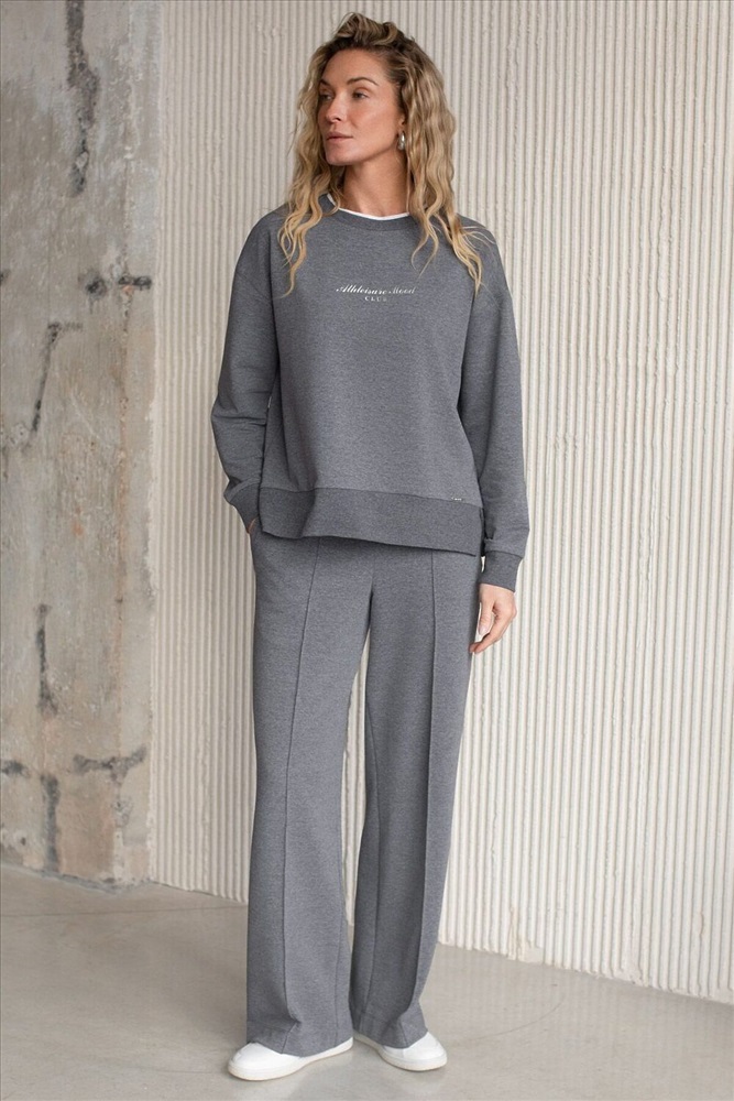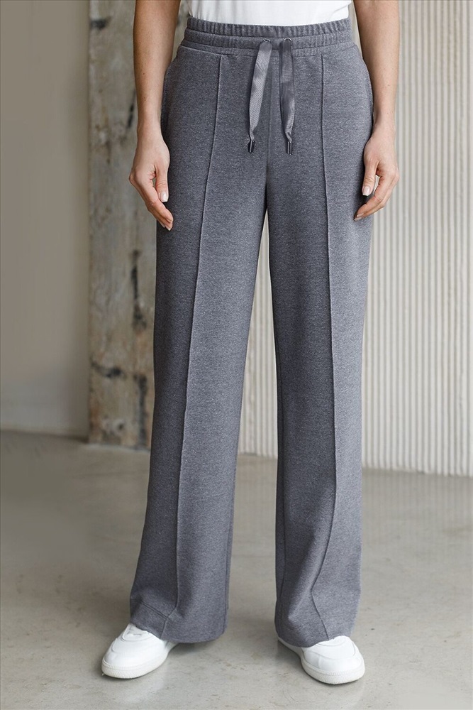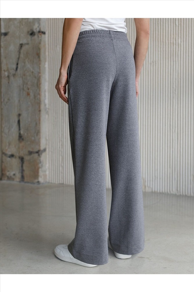 ID товара: 1228114 Состав: 95%Хлопок 5%ПУ Сезон: Весна/Лето Брюки темно-серого цвета с эффектом меланж прямого кроя выполнены из премиального футера-двухнитки. Лаконичный силуэт поддерживают застроченные стрелки, зрительно вытягивающие силуэт. Удобный пояс на резинке регулируется хлопковым шнурком с золотистой фурнитурой. Наличие эластана в составе изделия гарантирует комфорт и долговечность изделия. Эластичный материал хорошо пропускает воздух, позволяя телу дышать, и легко тянется, не ограничивая движения. Эти уютные брюки созданного для вашего комфорта. Нежный и стильный вариант подходит на любую фигуру, благодаря своей идеальной посадке. Свободный прямой крой обеспечивает свободу движений и максимальное удобство в любых ситуациях, поэтому они подойдут и на большие размеры, включая 56 размер. Стильный расклешенный крой добавляет изюминку в ваш образ. Эти брюки универсальны и могут стать отличным вариантом, как для занятий, так и для повседневной носки. Они легко вписываются в повседневный образ, благодаря универсальности и элегантности. Достоинства фигуры подчеркиваются, а силуэт визуально вытягивается за счет кроя палаццо и стрелок. В этих спортивных брюках вы будете чувствовать себя комфортно и уверенно, наслаждаясь каждым моментом дня. Рекомендуем сочетать с артикулами: D49.160, D49.167, D49.168 Комментарии к товару